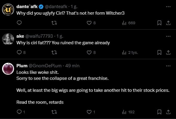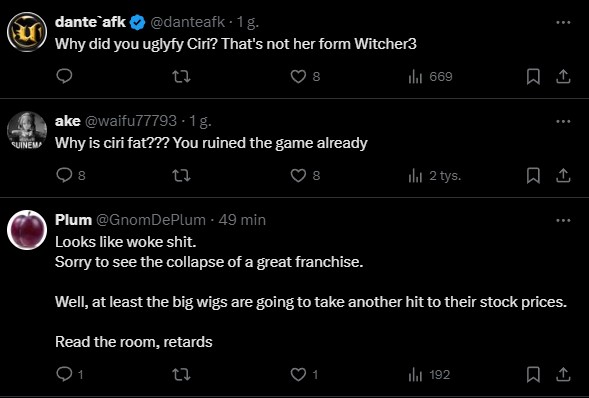 Innymi słowy, Ciri jako główny bohater Wiedźmina 4 była tak naprawdę “pewniaczkiem”. Chociaż jest to postać lubiana, to będzie i tak musiała pokazać klasę, żeby dorównać legendzie Białego Wilka. Bohatera, na którym wychowała się poniekąd część z graczy w wieku 20-35 lat, widząc w nim bardzo specyficzny rodzaj mężczyzny. Trudno się więc dziwić, że zwiastun Wiedźmina 4 podzielił odbiorców na dwie grupy. Jedni pieją z zachwytu nad cinematicem, a drudzy zarzucają studiu CD Projekt Red obranie kursu Ubisoftu i “pójście w stronę woke”. Widać to zwłaszcza w komentarzach na X, a część z największych krzykaczy przewiduje na podstawie tego materiału upadek “Mesjasza na rynku gier”, za którego Redzi byli uznawani aż do wydania zabugowanego Cyberpunka 2077, choć miano to w pewnym stopniu odzyskali po premierze Widma Wolności.