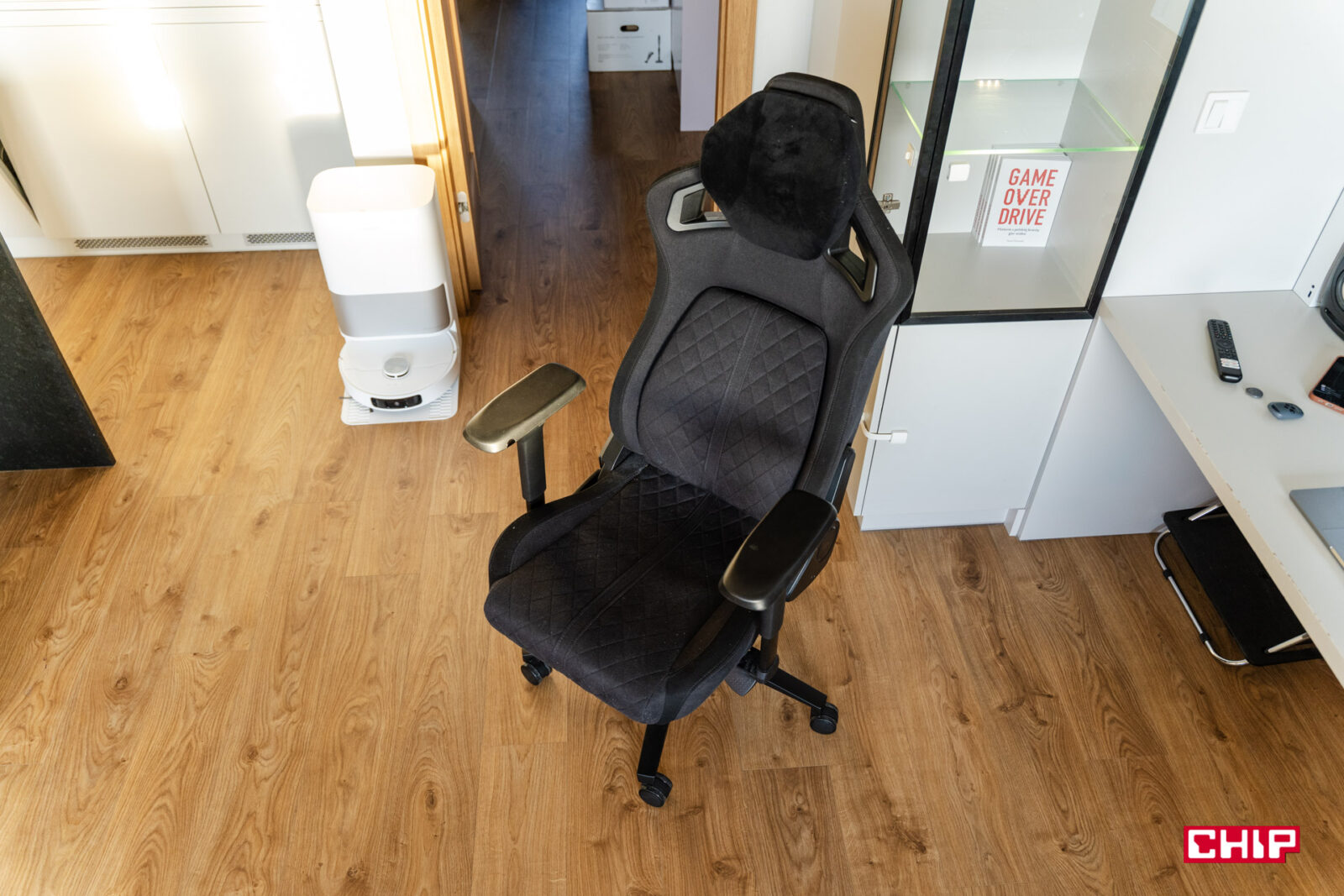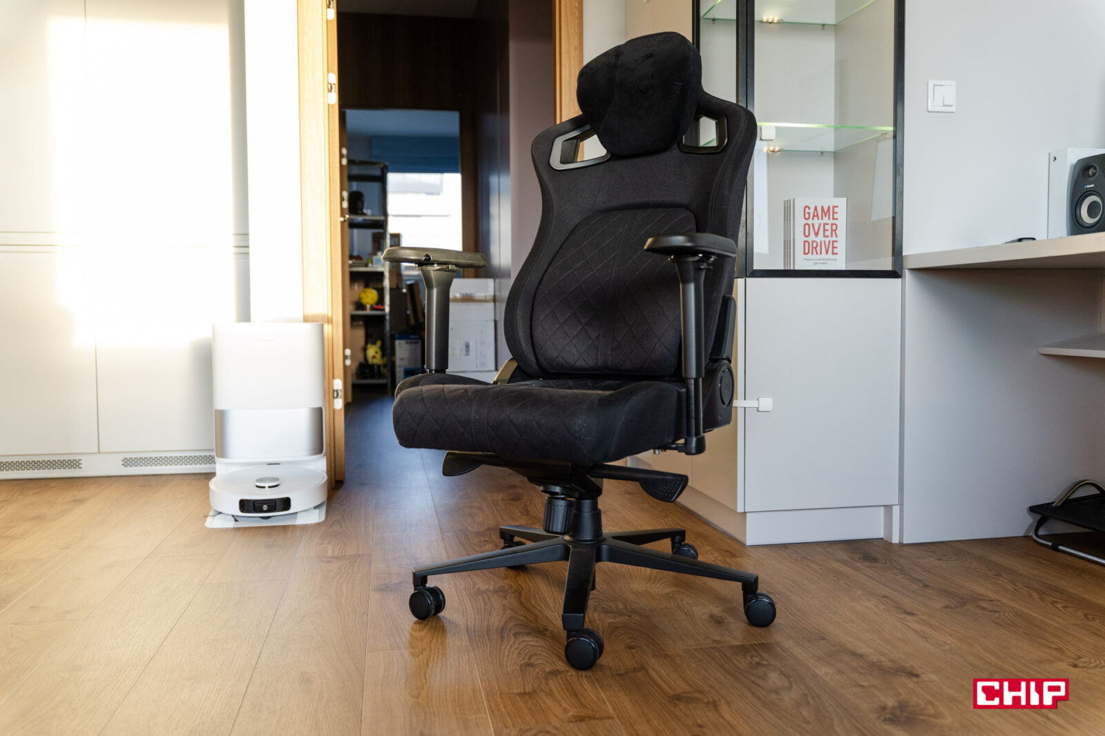 Fotel jest więc duży i bardzo wygodny. Zarówno w ułożeniu bardziej pionowym, typowo pracującym, jak i nieco bardziej zrelaksowanym, kiedy lekko odchylimy oparcie. Te możemy odchylić do maksymalnie 165 stopni, więc w zasadzie można się tu całkiem komfortowo przespać.