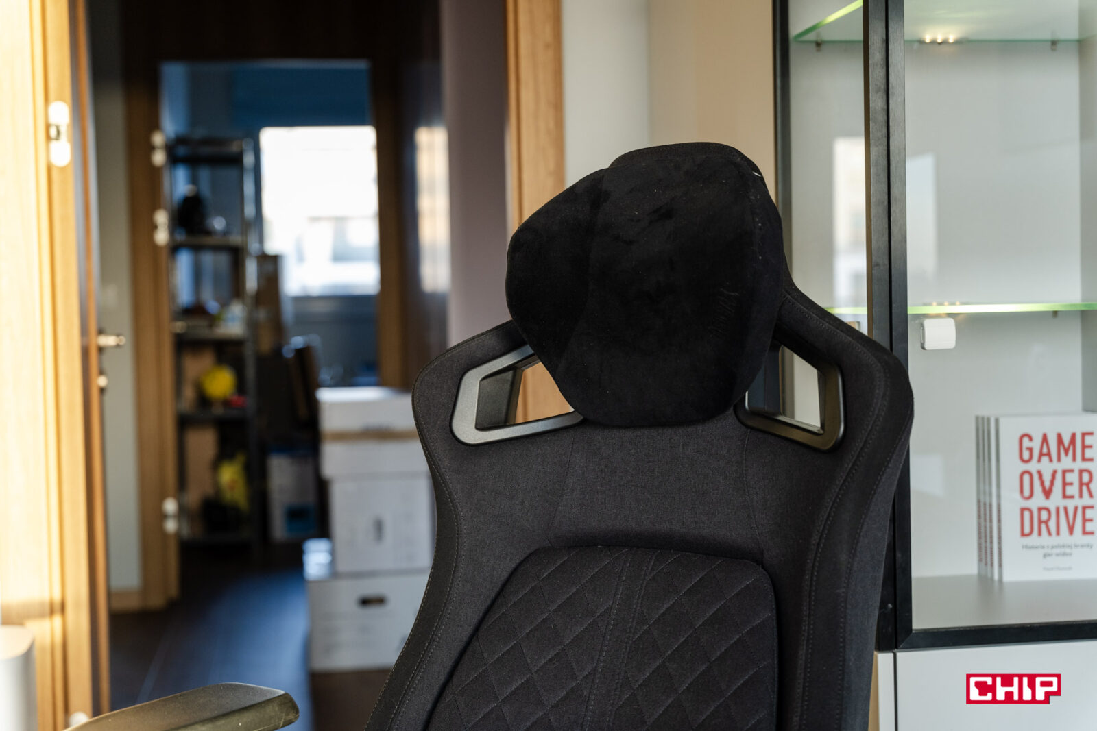 Zakres regulacji poduszek – pod plecami i na zagłówku, jest o wiele większy w wariancie magnetycznym. Szczególnie w przypadku zagłówka taka poduszka trzyma się solidniej i jeśli ją umieścimy w interesującym nas miejscu raz, to tam zostaje. Poduszki montowane za pomocą pasków czy różnego rodzaju gumek lubią się przesuwać w trakcie użytkowania. Poza tym poduszki bez pasków bardzo dobrze wyglądają. Magnetyczne są też osłony śrub mocujących oparcie i tutaj podobnie – wygląda to o wiele estetyczniej.