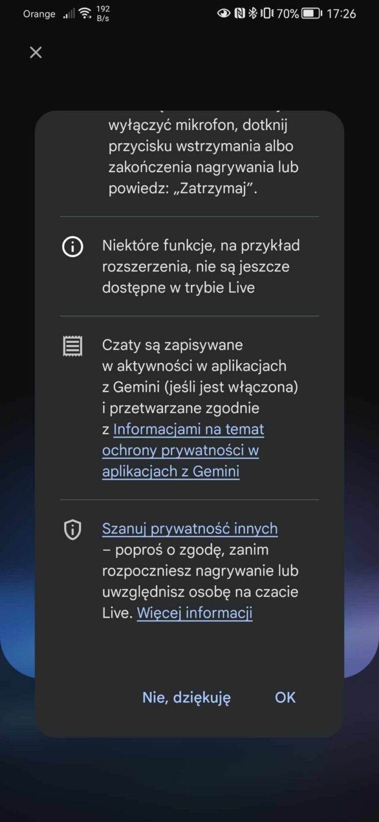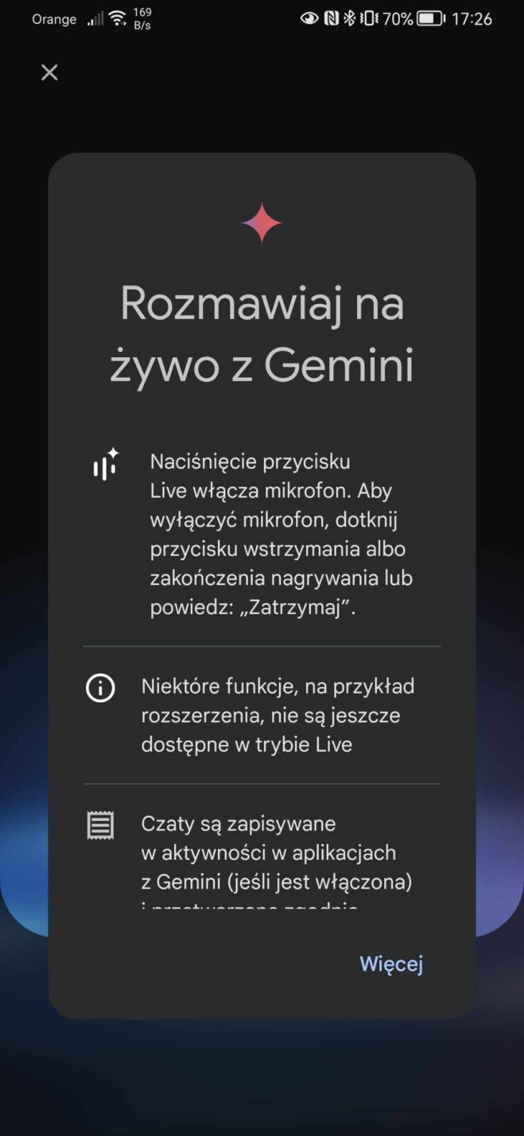 Chociaż Gemini Live było dostępne w Polsce, to w zasadzie korzystać mogli z niego wybrani użytkownicy i w tym wypadku wcale nie chodzi mi o osoby z subskrypcją Google One AI Premium (chociaż takowa oczywiście była wymagana). Z powodu braku obsługi języka polskiego, swobodne konwersacje można było prowadzić po angielsku lub w innym obsługiwanym języku, a to oczywiście ograniczało jego dostępność dla przeciętnego użytkownika z Androidem.