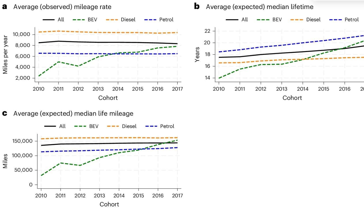 Elektryczne pojazdy akumulatorowe (BEV) osiągnęły właśnie przełomowy punkt, dorównując tradycyjnym samochodom z silnikami benzynowymi i dieslowymi pod względem żywotności. Tak przynajmniej wynika z badania przeprowadzonego przez międzynarodowy zespół naukowców, którzy wysnuli takie wnioski z analizy niemal 300 milionów danych zebranych przez brytyjskie Ministerstwo Transportu (MOT) z lat 2005–2022. W ramach swojej pracy badacze przeanalizowali, jak pojazdy radzą sobie na przestrzeni czasu, a jej efekt doczekał się publikacji na łamach Nature Energy.