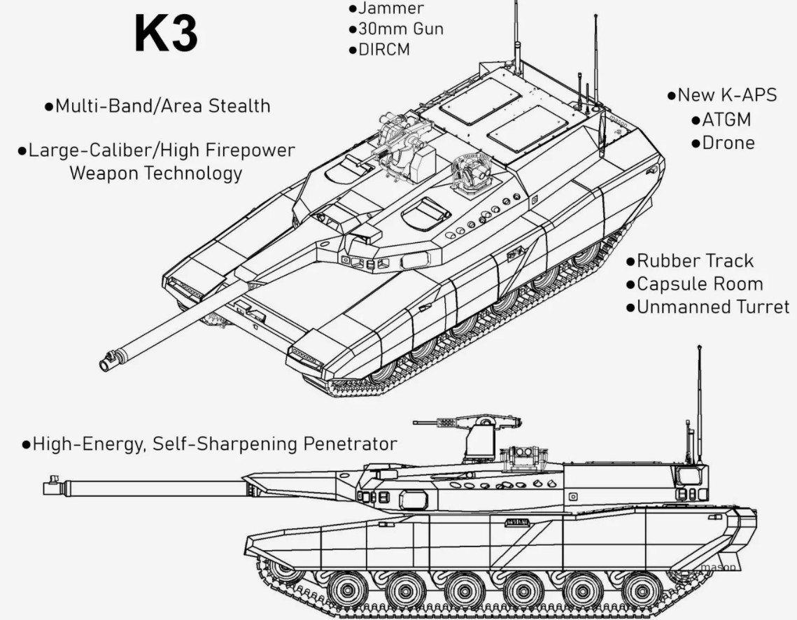 Dowiedzieliśmy się, że prototypy K3 mają zostać zaprezentowane do 2030 roku i zgodnie z oczekiwaniem, będą bazować na dotychczasowych osiągnięciach Korei Południowej. Projekt i wykonanie K3 będą czerpać pełnymi garściami z doświadczeń zdobytych podczas rozwoju swoich poprzedników, takich jak seria K1 i zaawansowany technologicznie K2 Black Panther. Jednocześnie K3 nie ma być byle kolejną iteracją, bo będzie prezentował sobą zupełnie nowy poziom potencjału bojowego przy jednoczesnym zachowaniu masy podobnej do Czarnych Panter. Innymi słowy, będzie czymś znacznie lepszym od m.in. Abramsów, które z iteracji na iterację ważyły dobre kilkadziesiąt procent więcej.