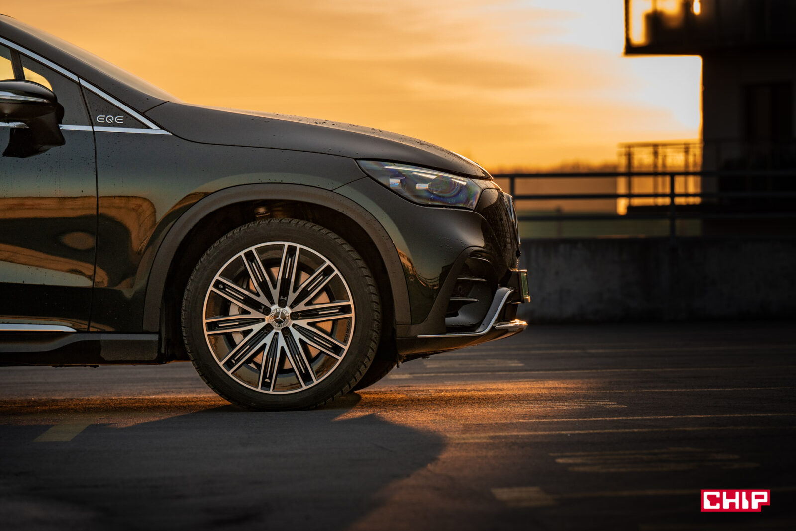 Testowany egzemplarz EQE SUV w kolorze zielonym prezentuje się obłędnie i piszę to jako osoba, która nie przepada za zielonym kolorem. Gdyby opisać go jednym zdaniem byłoby to auto w kolorze – i tak Cię na niego nie stać. Samochód może nie największy, ale zdecydowanie z tych dużych, bo mamy tu 4863 mm długości, 2141 mm szerokości z lusterkami i 1685 mm wysokości. Wystarczająco dużo, aby mycie go stanowiło pewne wyzwanie.