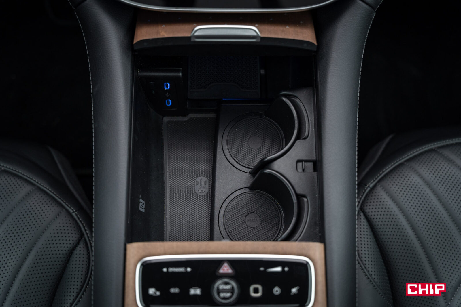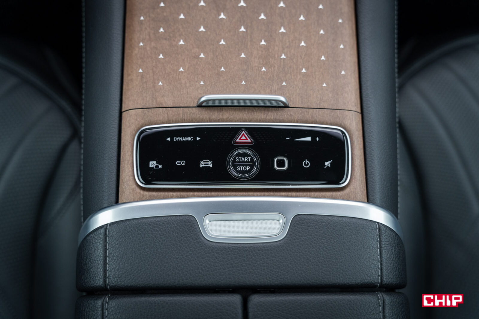 Wykonanie wnętrza jest na wysokim poziomie, nawet bez przymykania oczu na typowe dla obecnej generacji Mercedesa mankamenty. Jak mocno plastikowe wyloty powietrza, czy skrzypienie po lekkim przyciśnięciu końcówek ogromnej tafli szkła na desce rozdzielczej. Jakość skórzanych elementów, połączenie materiałów, drewniana klapa zakrywająca uchwyty na napoje na ogromnym tunelu środkowym – trudno tego nie docenić.