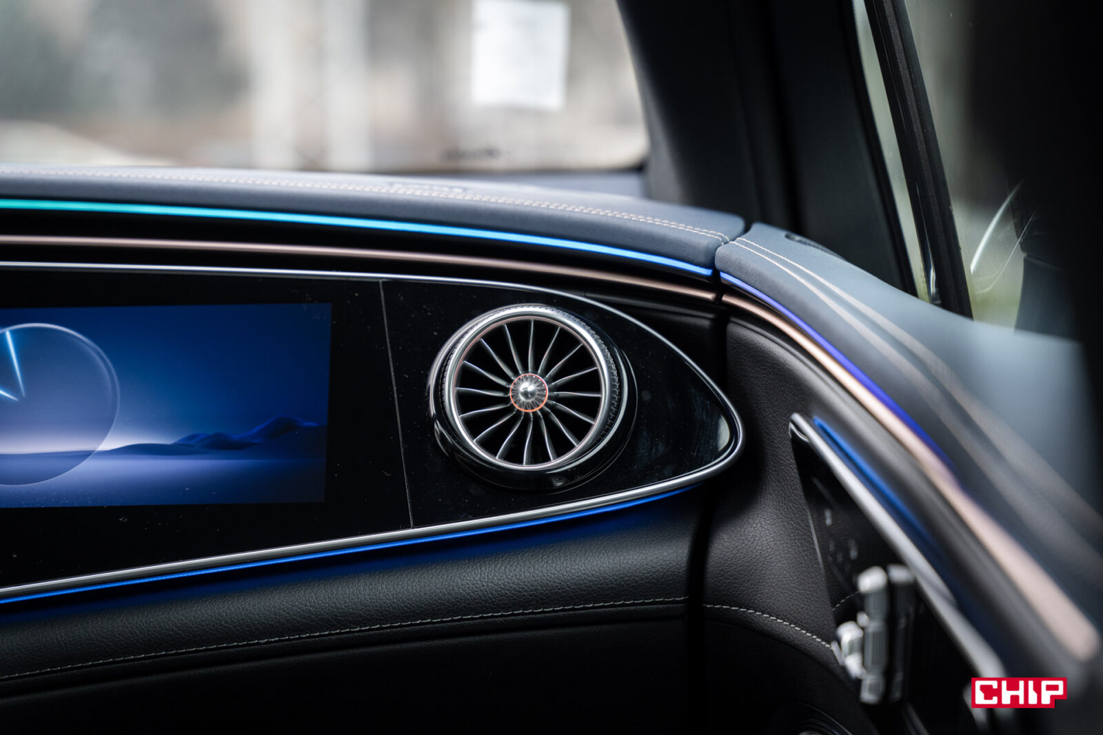 Tymczasem w większym wnętrzu EQE SUV wygląda to nieporównywalnie lepiej. Oczywiście wiele osób może przytłaczać, ale zwyczajnie tu pasuje.