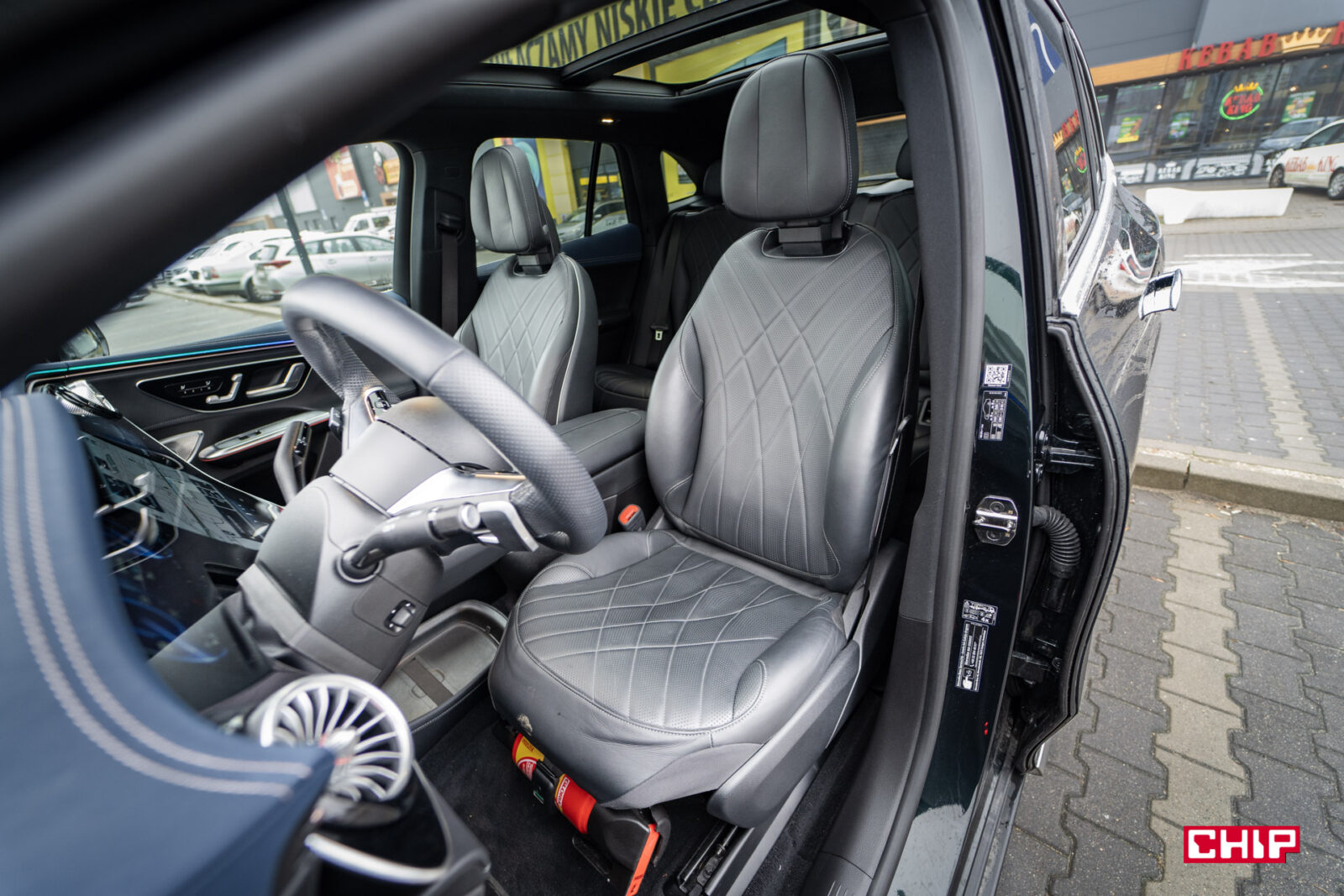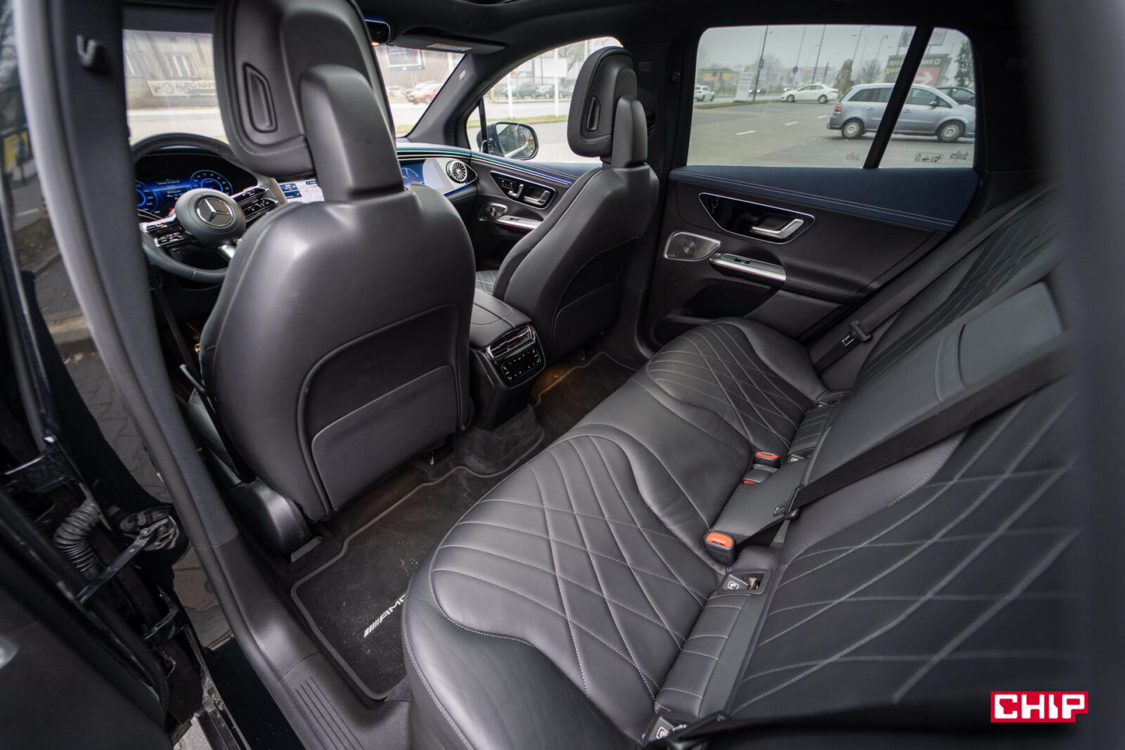 W sedanach klasy E Mercedesa, czy to spalinowych czy elektrycznych, jest bardzo wygodnie i komfortowo. To jednak nic przy tym, jak wygląda to w SUV-ie. Jednak większe wnętrze w tym przypadku robi robotę.