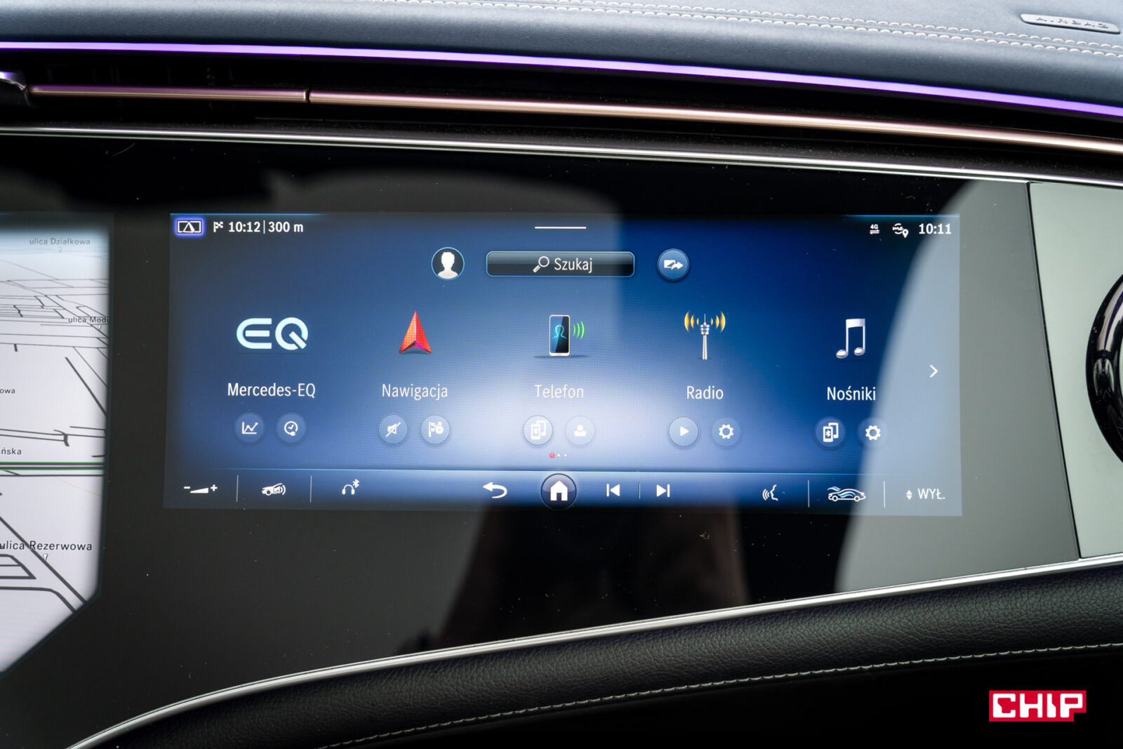 Nie jestem fanem tego, jak wygląda hyperscreen w Mercedesie EQE i EQS. Połączenie trzech ekranów w sedanach z jednej strony przytłacza, z drugiej ekran kierowcy w EQS wydaje się zdecydowanie za mały w stosunku do wyświetlanej grafiki i sprawia wrażenie, jakby zasłaniał co najmniej połowę przedniej szyby.
