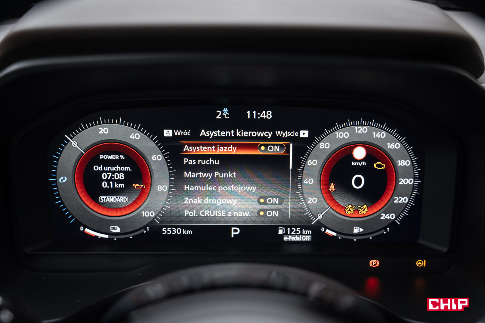 Wszystkie ustawienia dotyczące auta, takie jak działanie asystentów czy wyłączenie systemu asystenta prędkości i jego dźwięku wprowadzamy na ekranie kierowcy, za pomocą przycisków na kierownicy. Oczywiście trzeba się przy tym trochę naklikać. Czy to wygodne rozwiązanie? Kwestia gustu, ale naszym zdaniem można to zrobić lepiej, prościej i bardziej intuicyjnie.