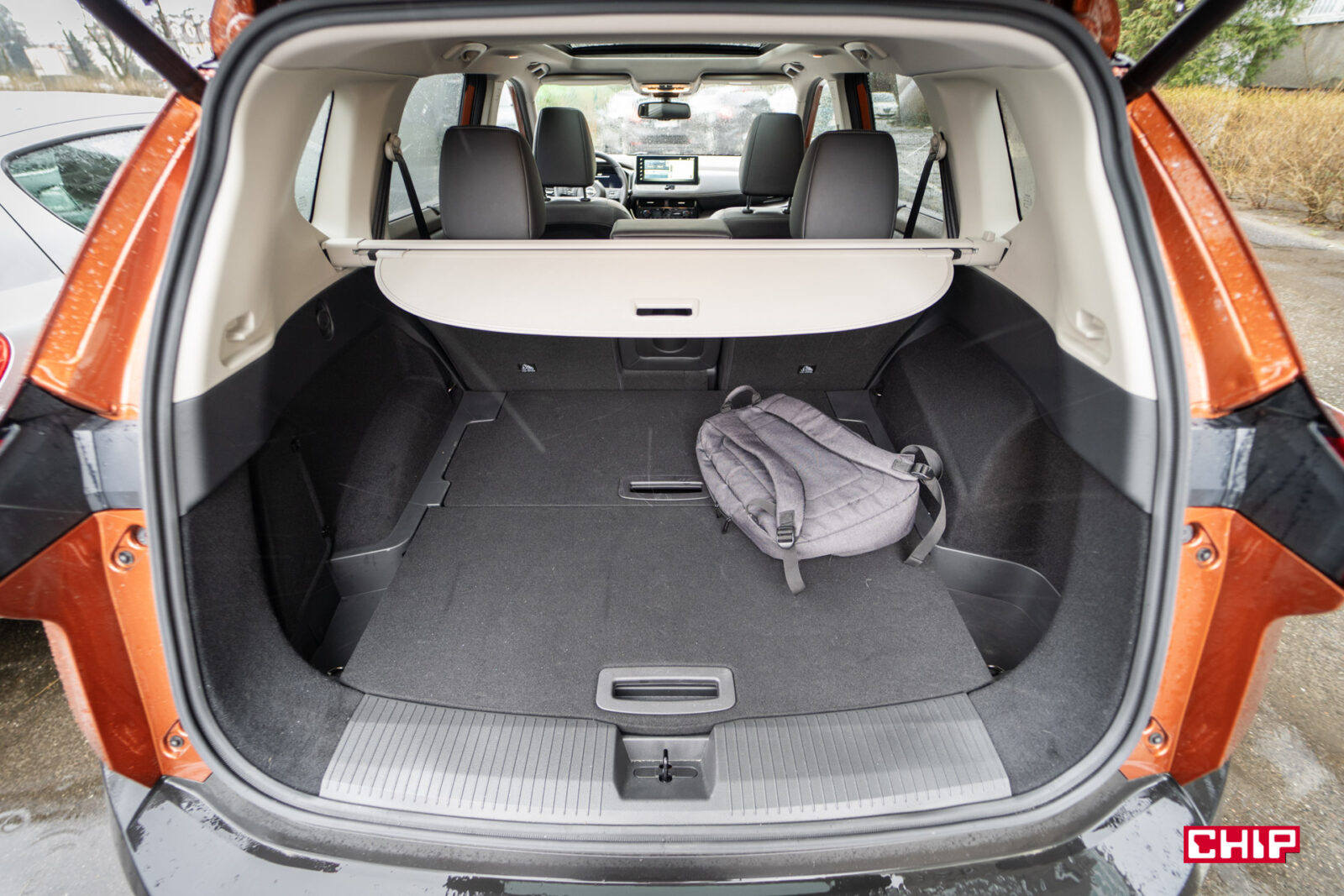 Przestronność wnętrza uzupełnia bagażnik, który w wariancie 5-osobowym ma 575 litrów pojemności, ale w opcji 7-osobowej jest to o 100 litrów mniej. Po złożeniu tylnej kanapy miejsca jest jeszcze więcej i mieliśmy okazję to przetestować. Podczas przeprowadzki biura spakowaliśmy tam ogromny karton od 42-calowego monitora, fotel biurowy, robota odkurzającego wraz ze stacją myjąco-oprózniającą, dwa dodatkowe średniej wielkości kartony z jakimiś pierdołami, deskę do prasowania, żelazko i jeszcze jakieś mniejsze pudełka. Zapakowaliśmy X-Traila po dach!