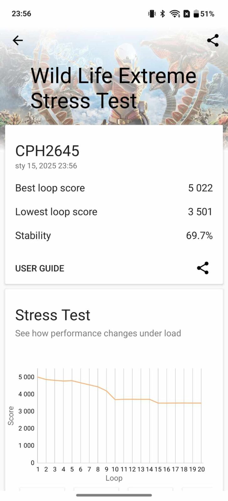 Po wynikach wydajności widać, że OnePlus 13R nie bierze jeńców. W połączeniu z 12 GB RAM-u i 256 GB pamięci na pliki oferuje pracę, której nie powstydziłby się żaden flagowiec. Zachowywanie aplikacji w pamięci operacyjnej przez całą noc? Proszę bardzo, bateria nawet nie ucierpiała. Animacje uzupełniają ten obraz i dzięki sporej płynności korzystanie z OnePlusa 13R daje sporo satysfakcji. Smartfon ma mniej problemów niż droższy OnePlus 13, a do tego jest bardzo dobrze chłodzony przez komorę parową. Na co dzień nie spotkałem się z przycięciami czy chwilami namysłu, więc jeśli waszym priorytetem jest wydajność i stabilność pracy, to OnePlus 13R ma w tym zakresie spore kompetencje.