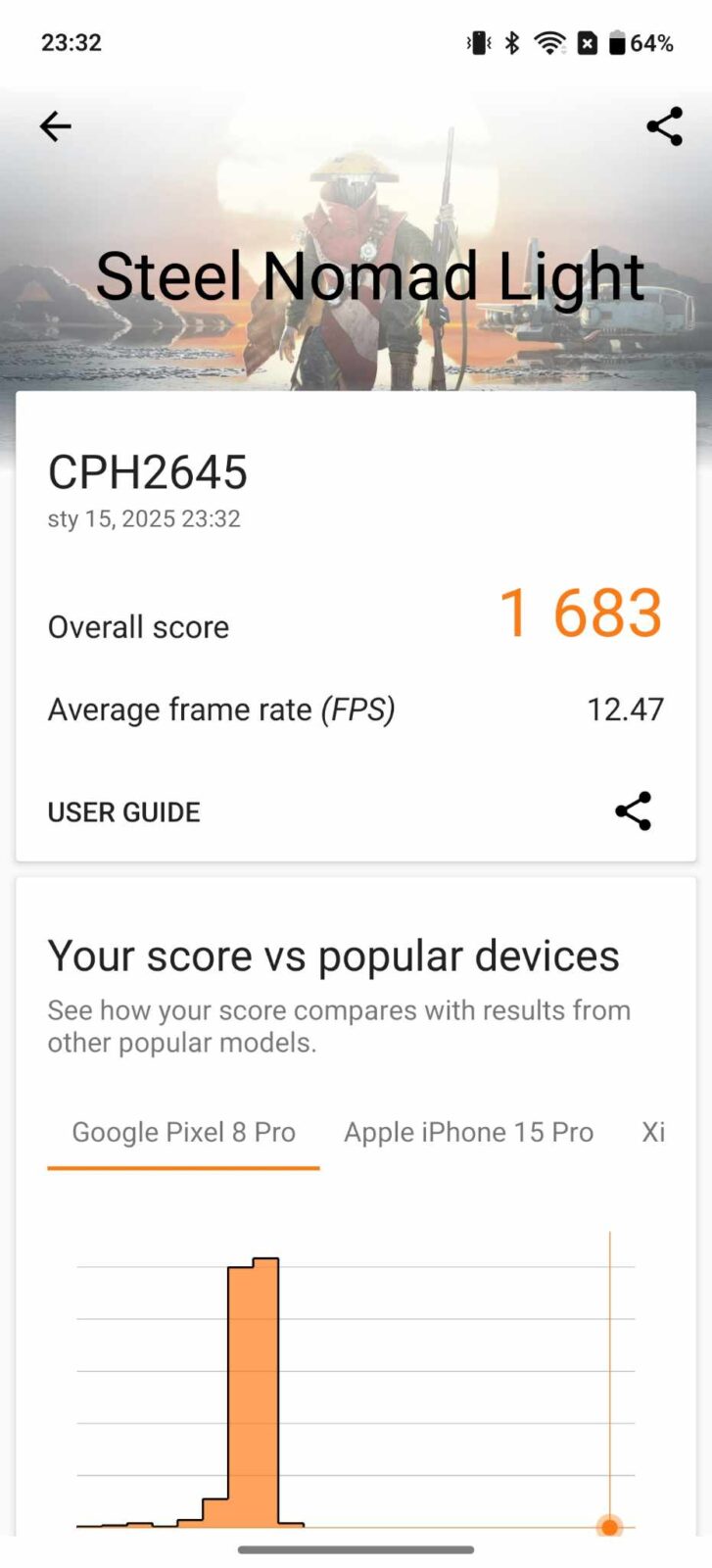 Moje spotkanie z OnePlusem 13 i Snapdragonem 8 Elite było mało fortunne. Testowany przeze mnie egzemplarz miał tendencję do przegrzewania się i odbierało to sporo satysfakcji. Jednocześnie, patrząc na recenzje z innych redakcji, widzę, że ten problem został zażegnany. OnePlus 13R korzysta z docenionego przeze mnie w recenzji OnePlus 12 Snapdragona 8 Gen 3. Choć to model z poprzedniego roku, a 8 Elite zaliczył spory skok procentowy, nie dajcie się zwieść – to w dalszym ciągu potężna jednostka, której przez wiele lat nic nie podskoczy, a która także jest gotowa na obsługę narzędzi opartych o SI bezpośrednio na urządzeniu.