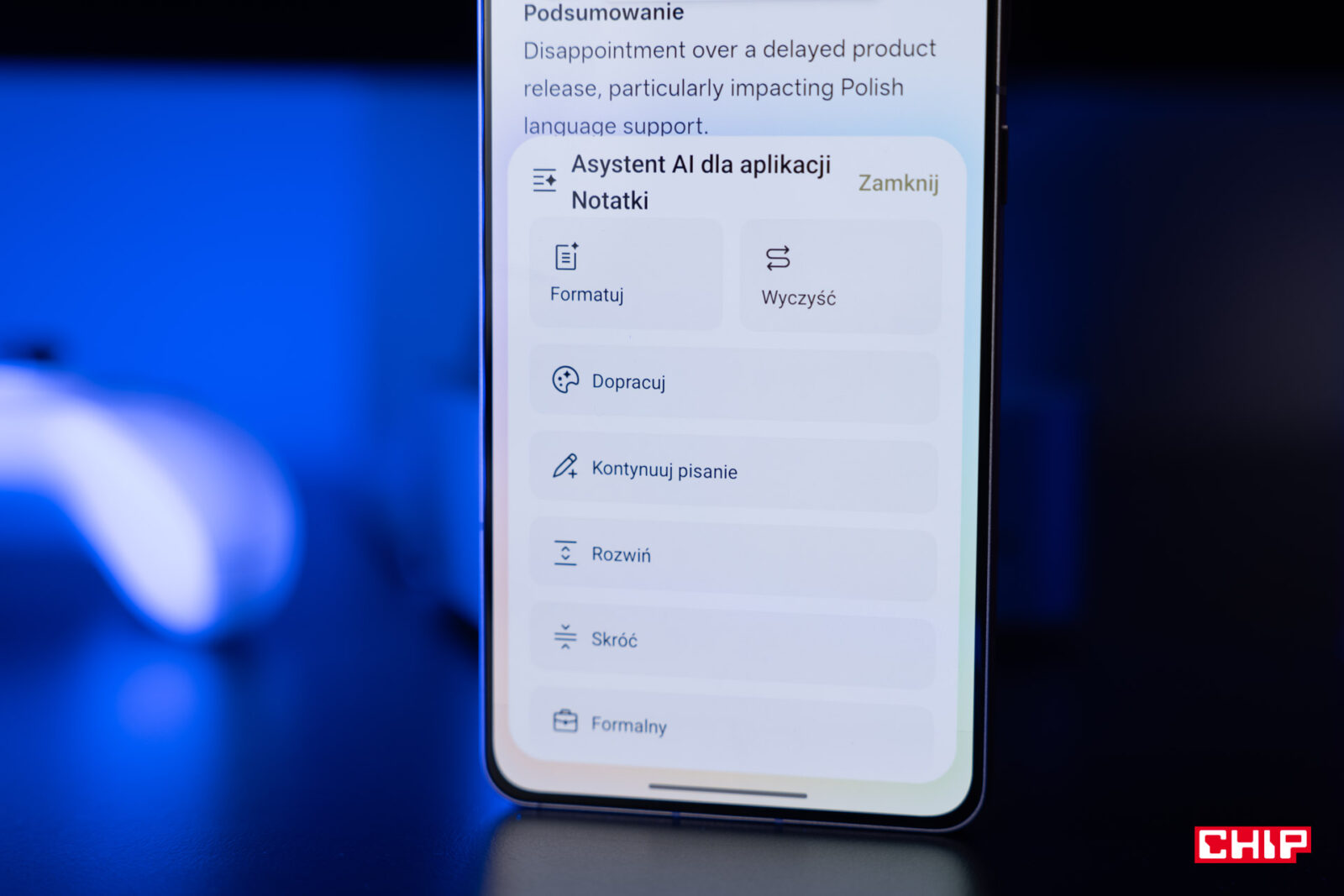 OnePlus 13R oferuje ten sam narzędzi, co flagowy brat. Obydwa telefony zostały wyposażone w rozwiązania oparte o sztuczną inteligencję. Nie będę się o nich zbytnio rozpowiadał z dwóch powodów. Po pierwsze, pisałem o nich w recenzji OnePlusa 13, a że w znacznej mierze opierają się o wysyłanie danych na zewnętrzne serwery, to nie ma tu powodu by twierdzić, że zadziałają inaczej. Po drugie: funkcje opierające się o modele językowe, jak generowanie podsumowań nagrań czy stron internetowych, nie działają w języku polskim. Do tego zestaw narzędzi jest mniej okazały niż chociażby w przypadku Samsunga, który ma własne narzędzia pozwalające na generowanie obrazków.