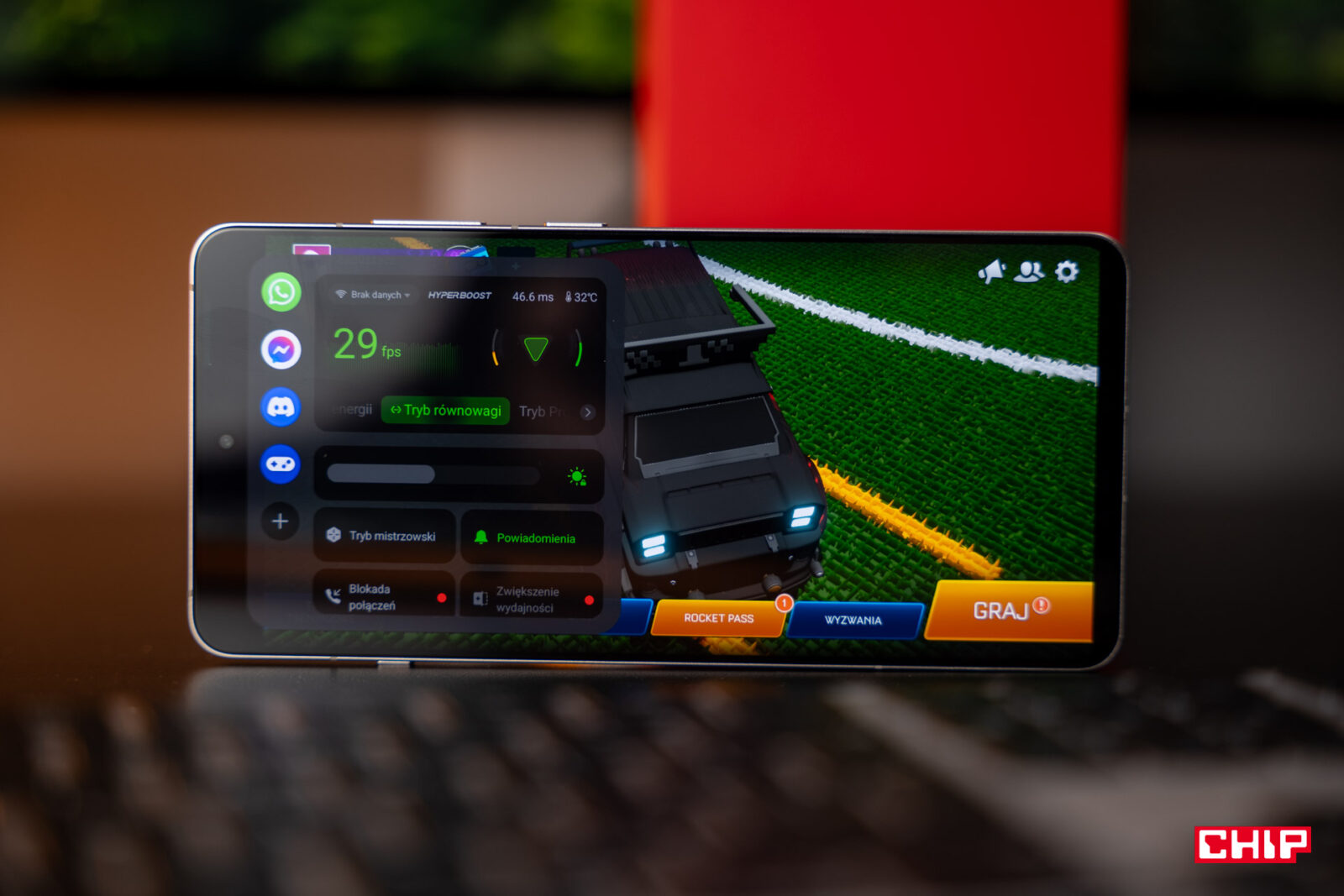 W przypadku gier warto zaznaczyć, że OnePlus 13R oferuje te same narzędzia wspierające rozgrywkę, co model sprzed roku i dwóch lat. Oznacza to, że w środku znajdziemy opcje zwiększające płynność rozgrywki, ale i ukrywające lub zmieniające prezentację powiadomień, a także skróty do aplikacji otwierających się w małych okienkach. Na wydajność wpłynie też wybór jednego z czterech ustawień zarządzania energią. Domyślnie smartfon ustawiono w trzecim z czterech trybów intensywności pracy.