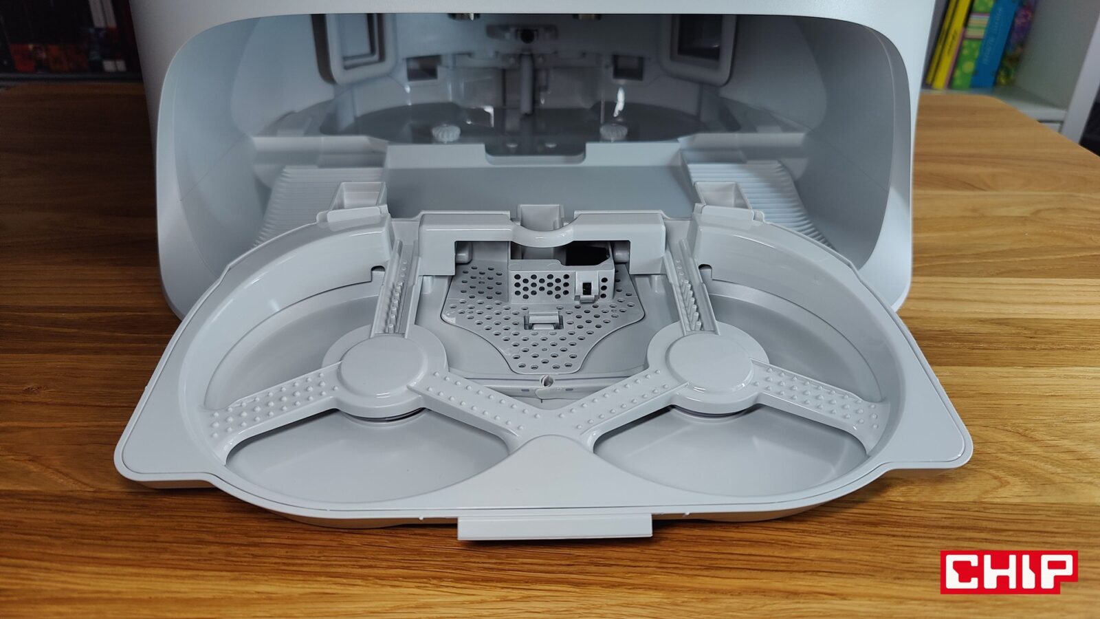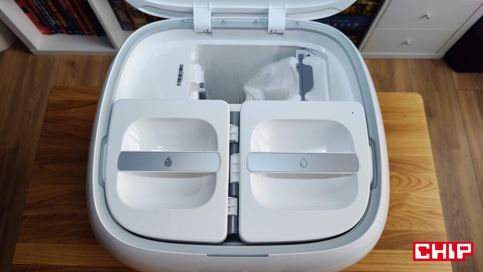 Stąd właśnie obecność w stacji dwóch zbiorników wody – tej czystej i brudnej, która pochodzi właśnie z procesu prania. Jej stan po zapełnieniu zbiornika potwierdza, że pranie rzeczywiście jest skuteczne, a jeśli nie wierzycie, to wyciągnijcie cały osprzęt piorący z sekcji, do której wjeżdża robot. Nie tylko z ciekawości tego, jak zachodzi proces czyszczenia, ale też z przymusu, bo większe zanieczyszczenia osadzają się w niej i wymagają regularnego ręcznego czyszczenia. Wisienką na torcie jest konfigurowalny proces osuszania mopów po ich wypraniu na zakończenie cyklu sprzątania, ale w tej akurat kwestii szkoda, że producent nie rozszerzył opcji ładowania w godzinach poza szczytem właśnie o dosuszanie mopów. Proces ten może bowiem trwać do nawet czterech godzin i pochłania około 75 watów energii.