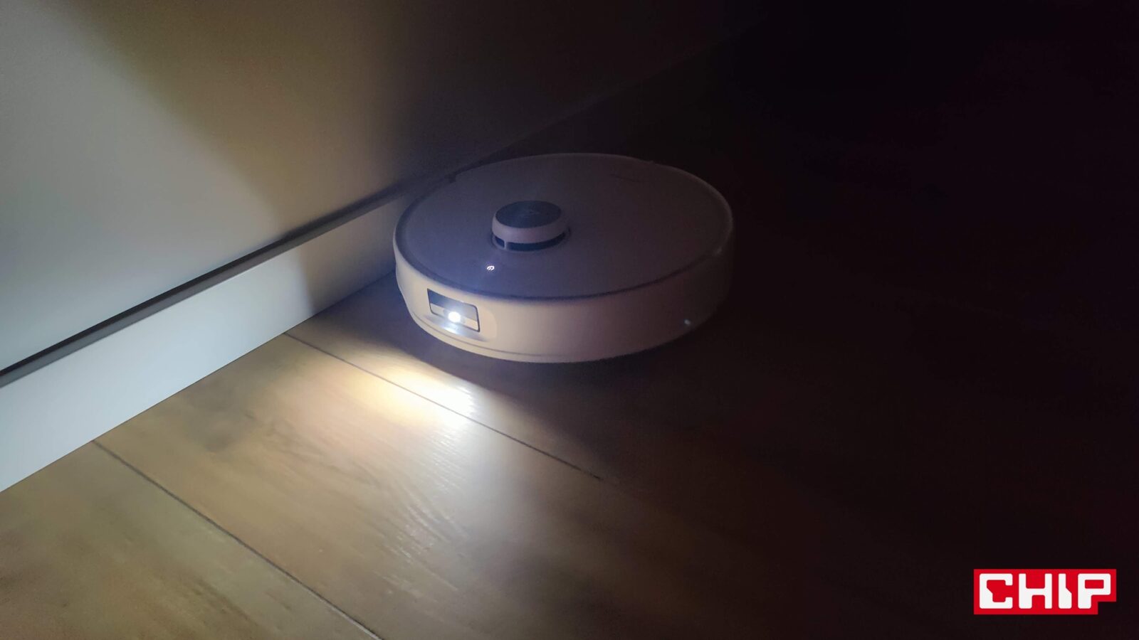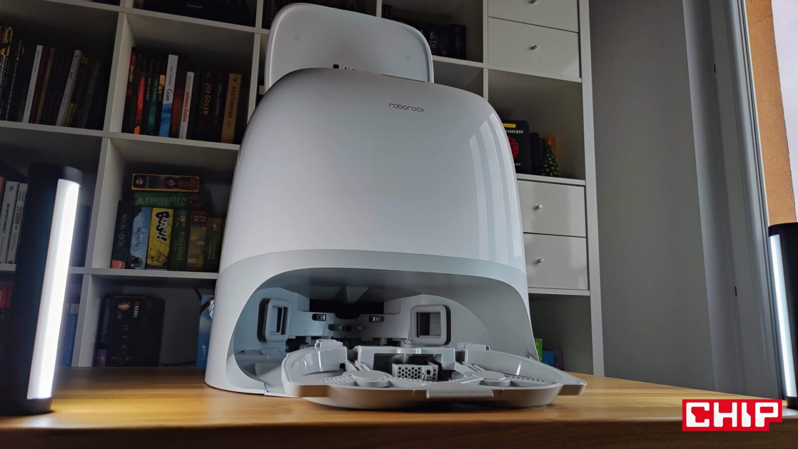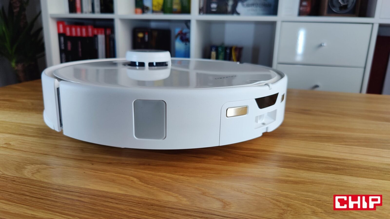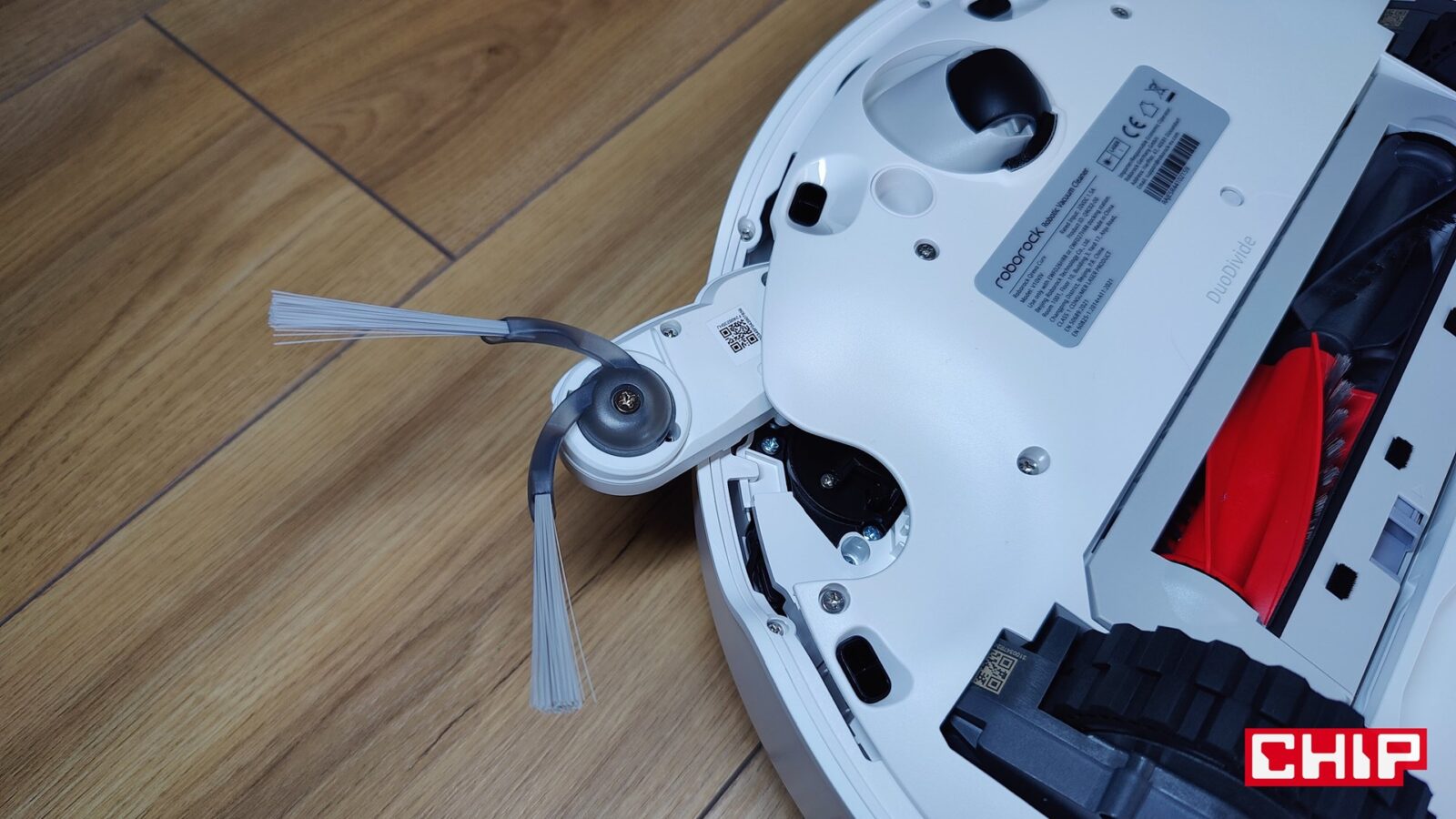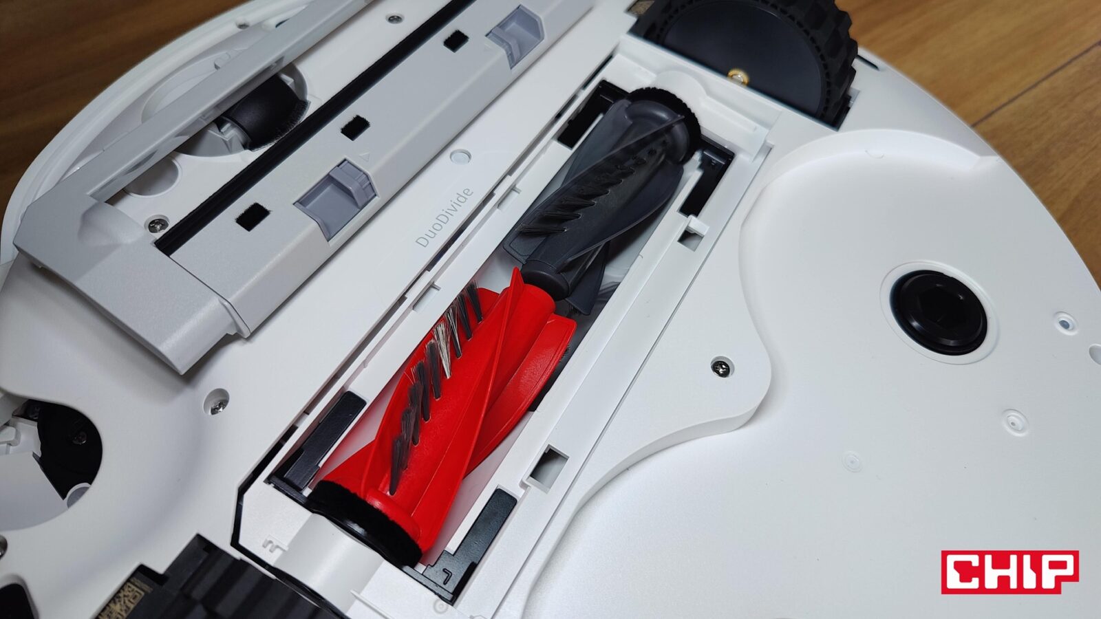 Od razu napomknę, że nie musicie się też martwić o doczyszczanie szczególnie trudnodostępnych miejsc, takich jak przestrzenie pod meblami czy rogi pomieszczeń. Tyczy się to nie tylko szczotki bocznej FlexiArm Arc ze specjalnym ramieniem, które wysuwa się w razie potrzeby, ale też jednej nakładki mopującej (FlexiArm Edge), która działa dokładnie w ten sam sposób. Widać to idealnie zwłaszcza wtedy, kiedy robot zaczyna proces czyszczenia wokół fotela biurowego i manewruje to szczotką, to mopem, aby doczyścić każdy fragment podłogi wokół kółek.
