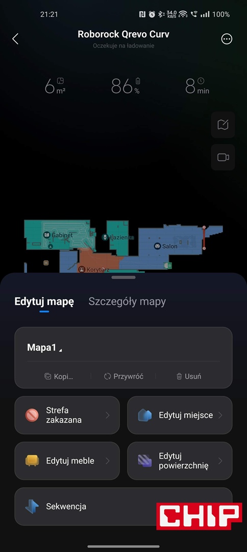 Skuteczność sprzątania i bezobsługowość Qrevo Curv stoi jednak na tak wysokim poziomie, że tego robota po prostu nie można nie polecić. Zwłaszcza jeśli do tej pory korzystaliście z prostszych odkurzaczy i macie już dosyć dbania o podkładki mopujące czy regularnie opróżnianie pojemnika na zanieczyszczenia, a marzycie o wymopowanych na błysk podłogach bez konieczności używania detergentu. Po skonfigurowaniu wszystkiego życie z Qrevo Curv sprowadza się bowiem do zadbania o stan zbiorników wody co kilka dni (informuje o tym aplikacja i świecąca się na czerwono dioda na stacji), wyczyszczenia tacki i przetarcia czujników raz na kilka tygodni, zweryfikowania zapełnienia worka raz na kilka miesięcy i… tyle. Stacja nie ma bowiem najmniejszego problemu z automatycznym myciem podkładki dla mopów i opróżnianiem pojemnika na kurz, więc możecie być pewni, że z nienagannego stanu dywanów i podłóg będziecie cieszyć się każdego dnia.