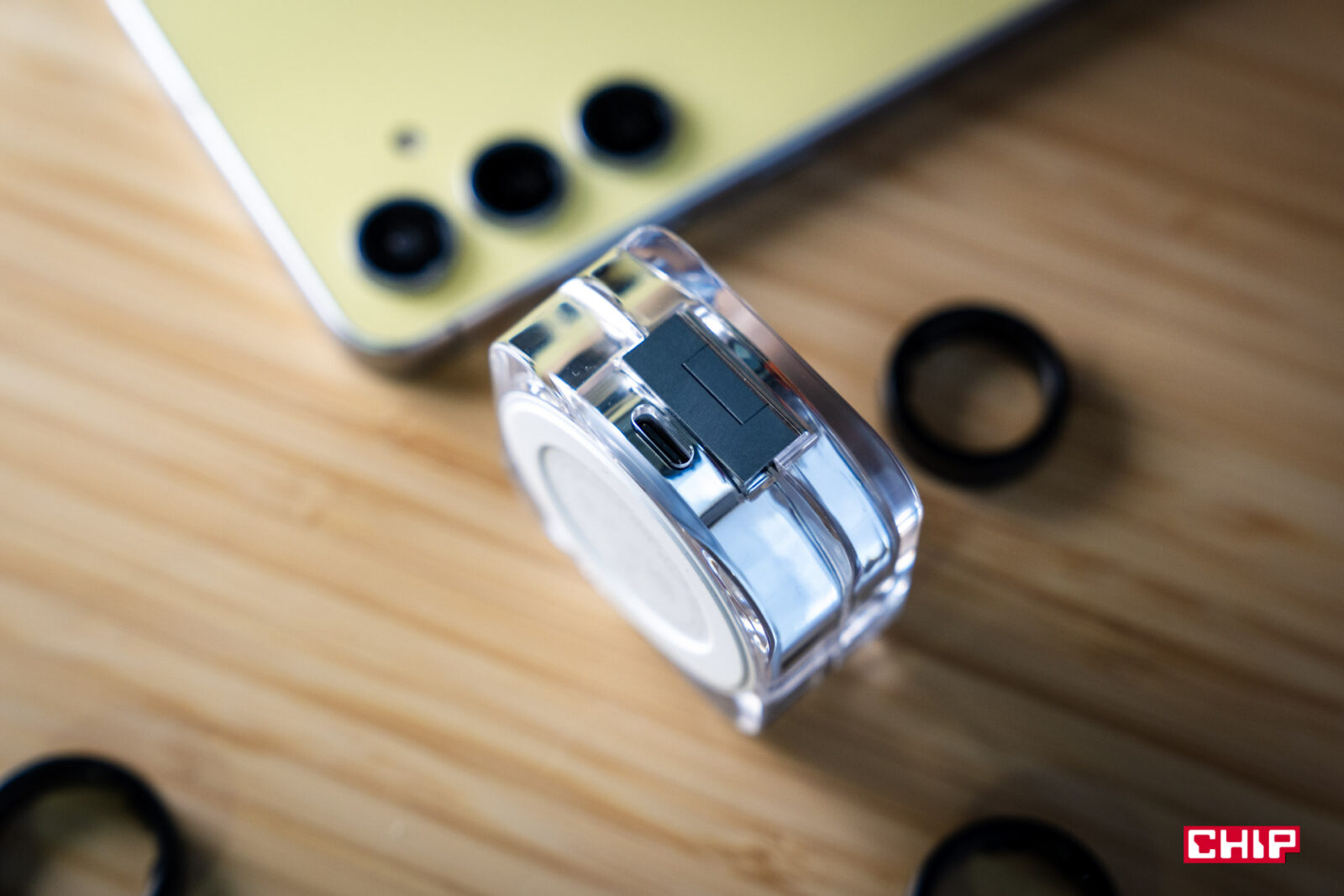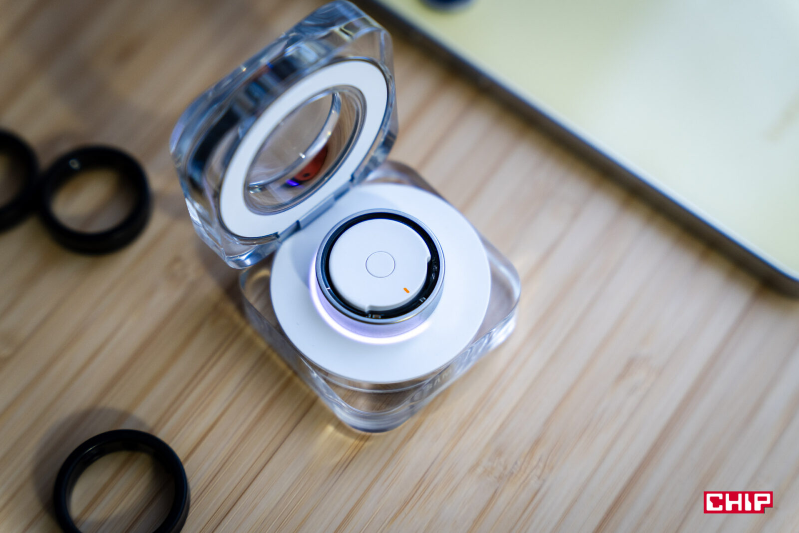 Czas pracy Galaxy Ringa zależy od jego rozmiaru. Im większy, tym większą baterię mieści. W praktyce, w wersji największej mówimy realnie o 6-7 dniach działania. Stan naładowania akumulatora sprawdzamy w aplikacji na smartfonie, a stan naładowania etui widzimy w formie podświetlanego okręgu wewnątrz obudowy i to on mówi nam o stanie naładowania.