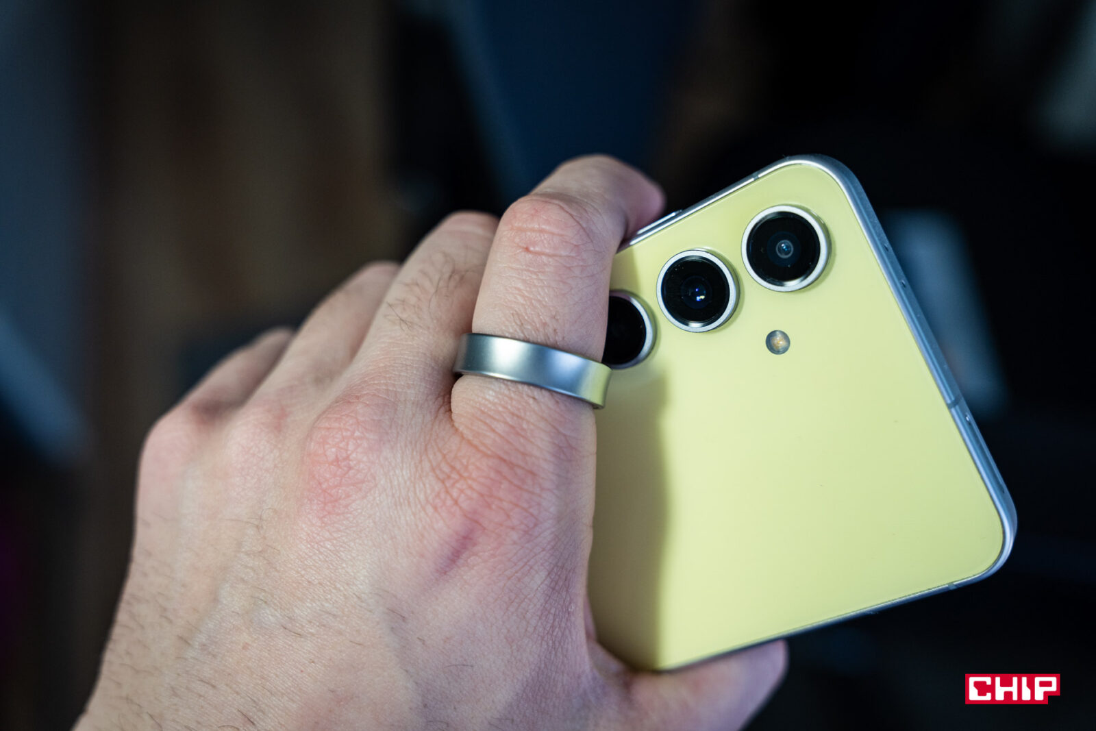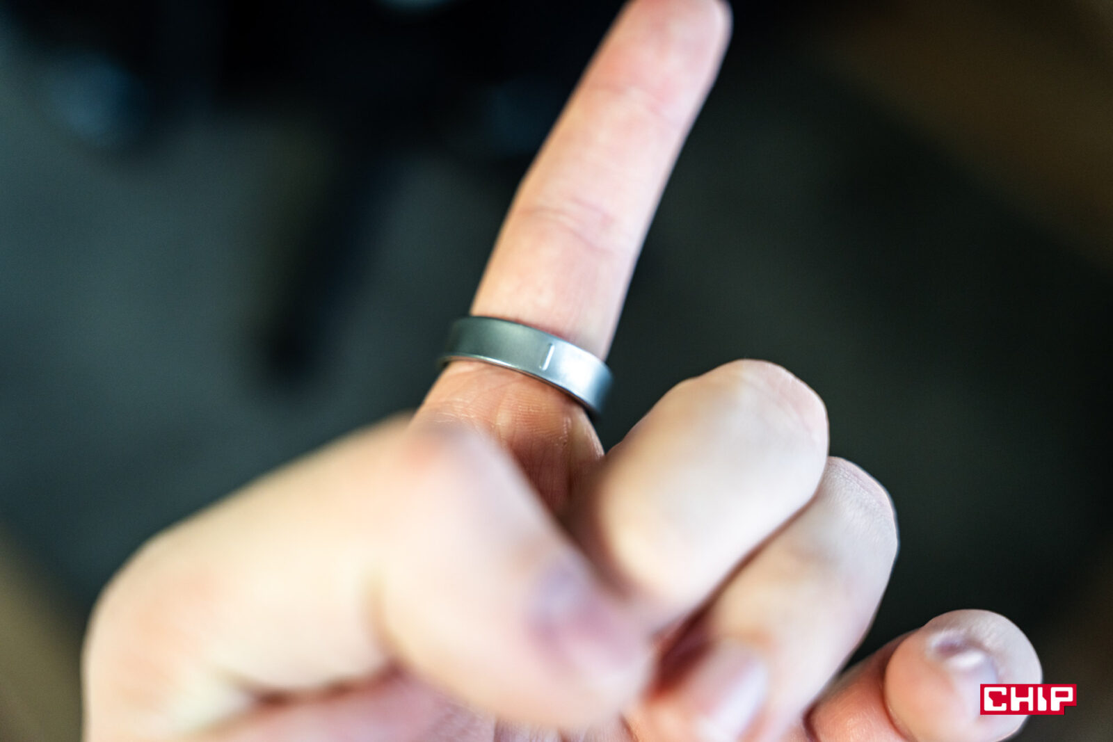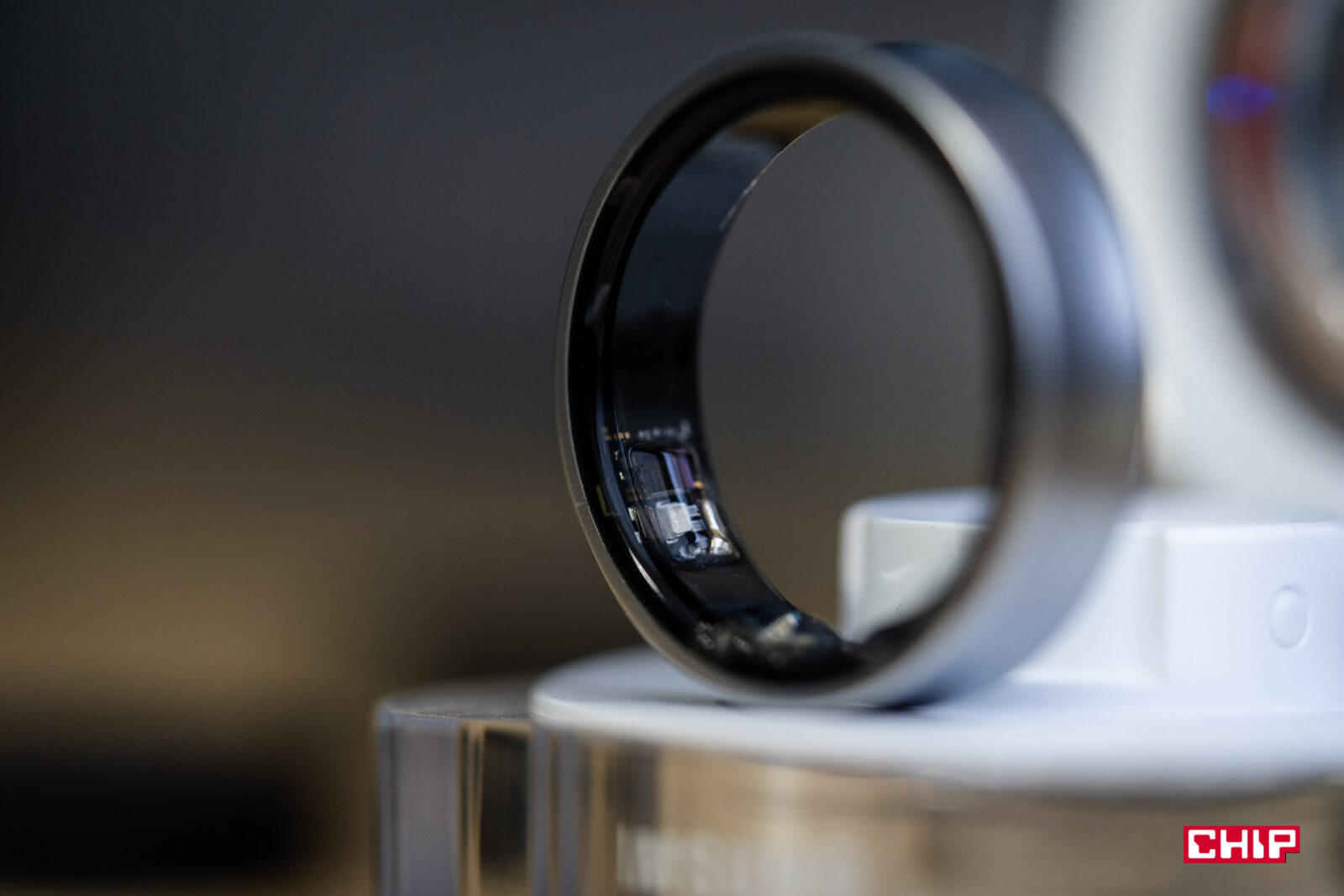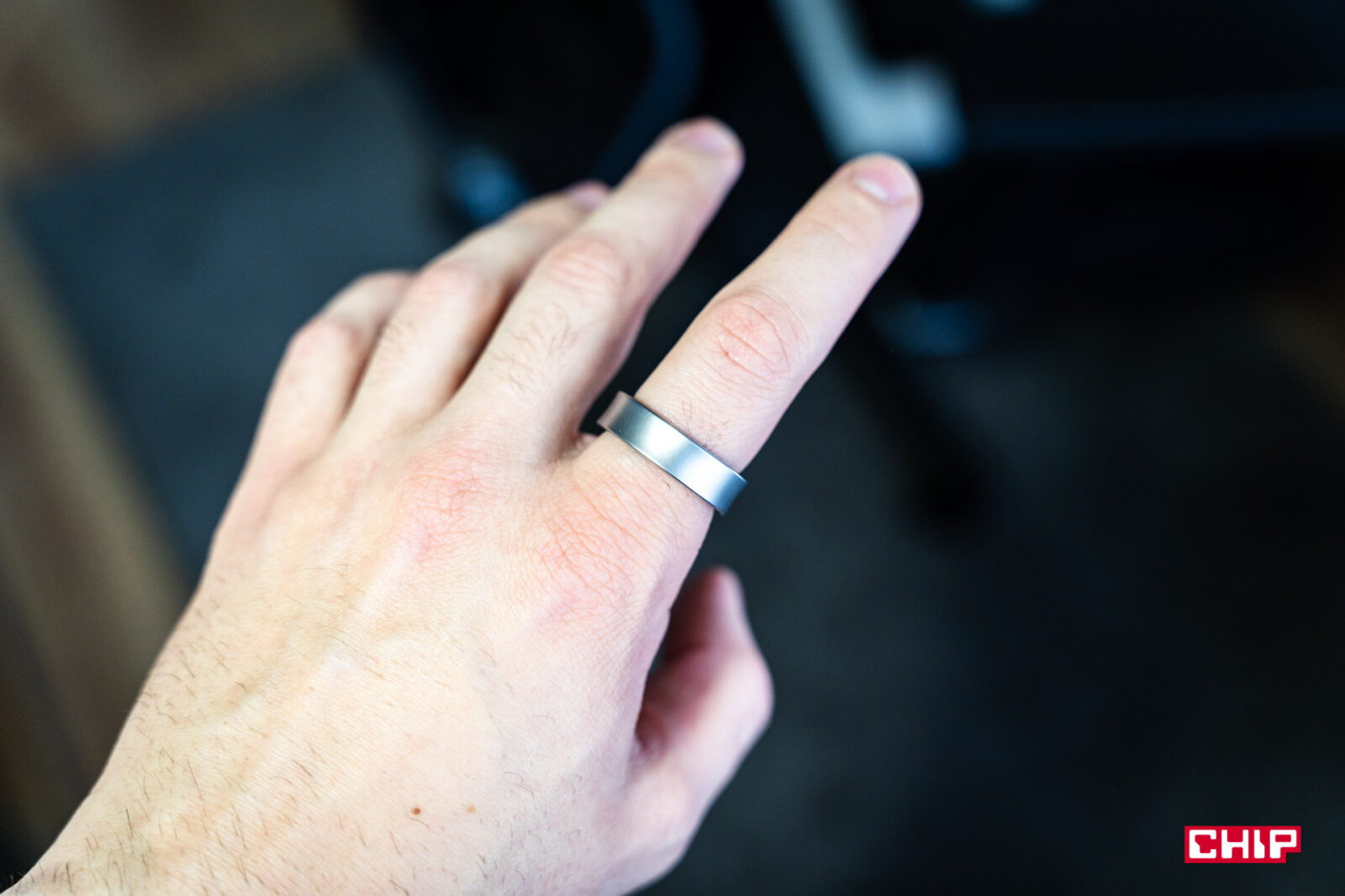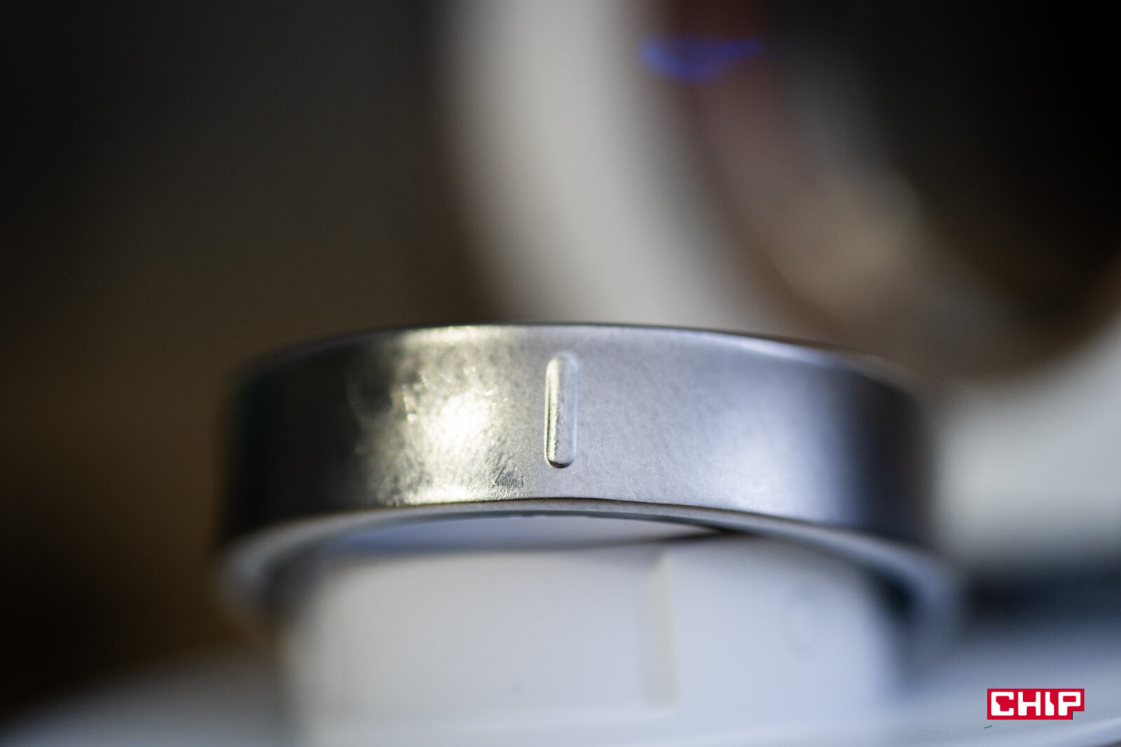 Galxy Ring to całkiem spora obrączka. Szeroka i delikatnie wklęsła na środku, od zewnętrznej strony. Jedynym widocznym elementem obudowy jest malutka wypustka, która pokazuje nam gdzie znajdują się sensory i teoretycznie ta część powinna znajdować się od spodu palca. Z czego jest wykonany Galaxy Ring? Nie wiadomo, poza tym, że ma mieć tytanową powłokę. Czy jest niezniszczalny? Oj tu się zdziwicie, ale o tym później.