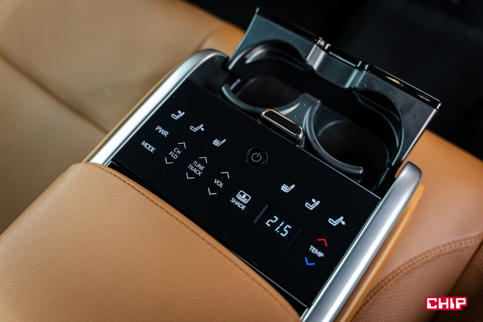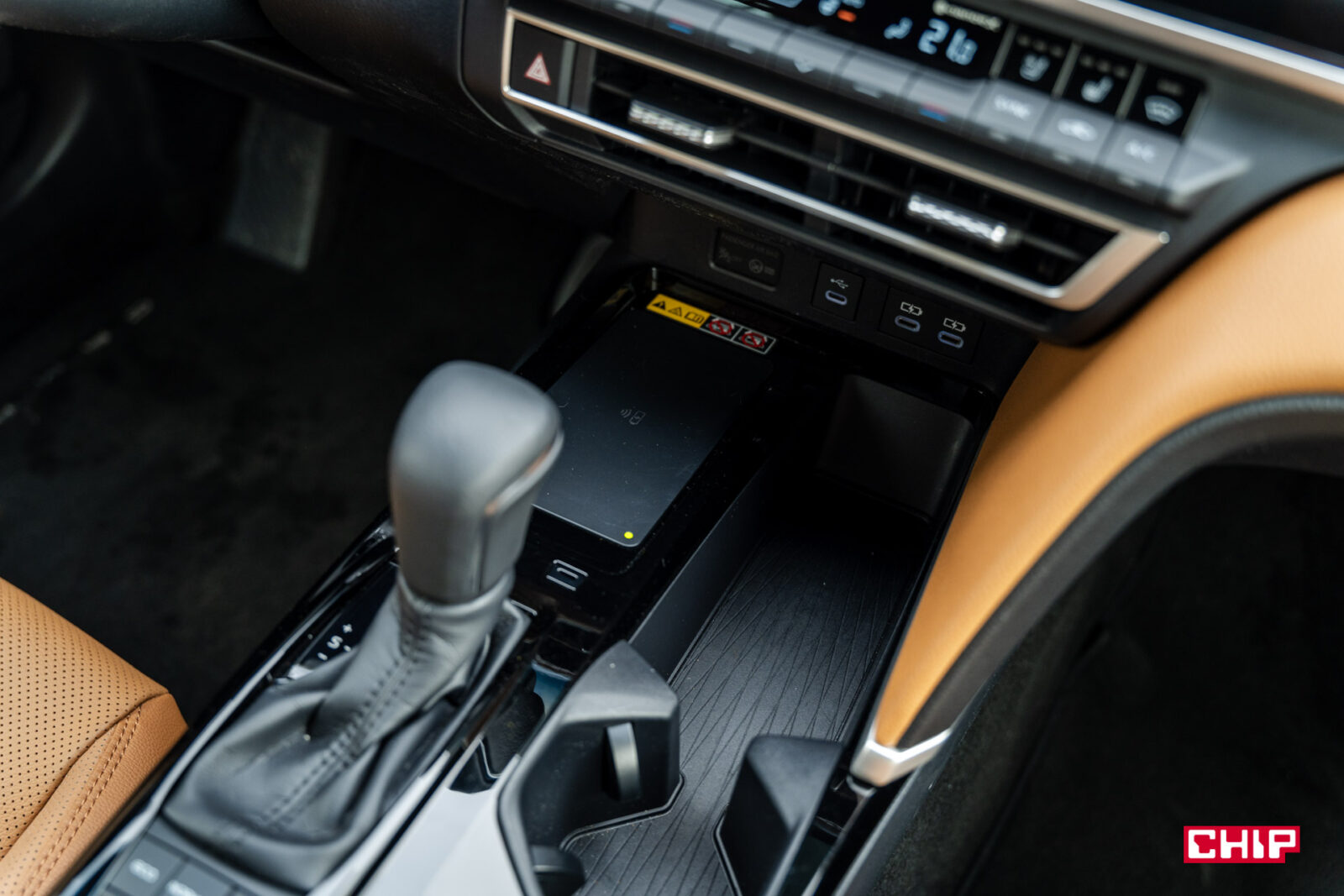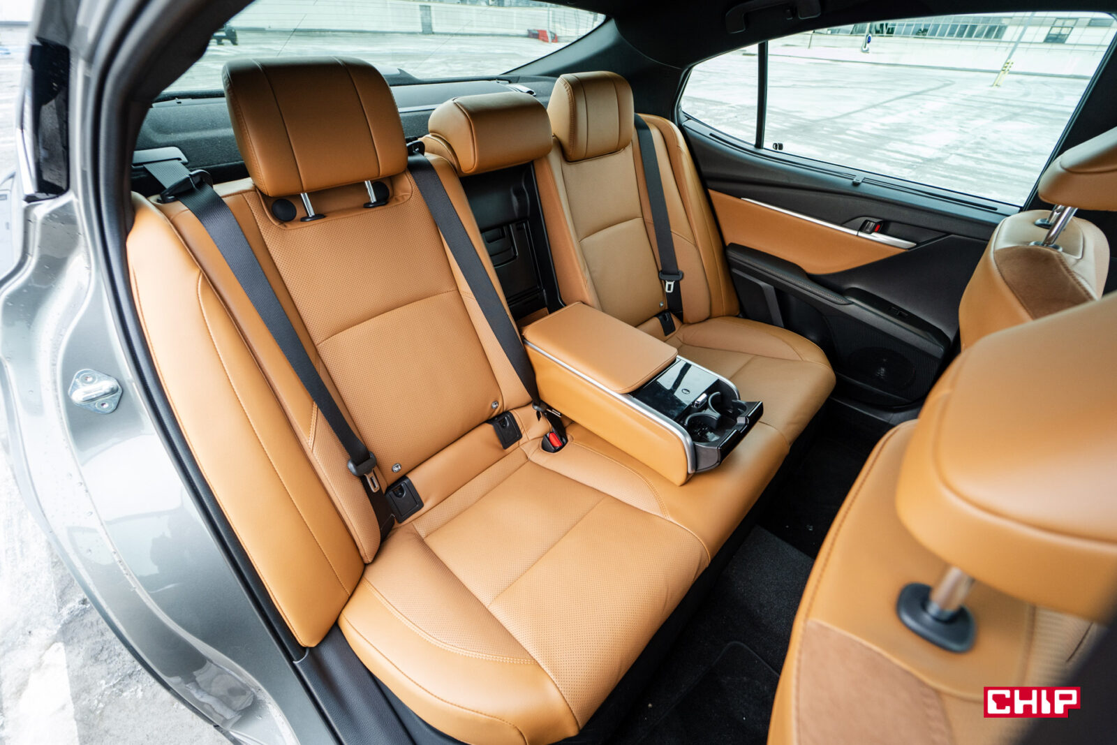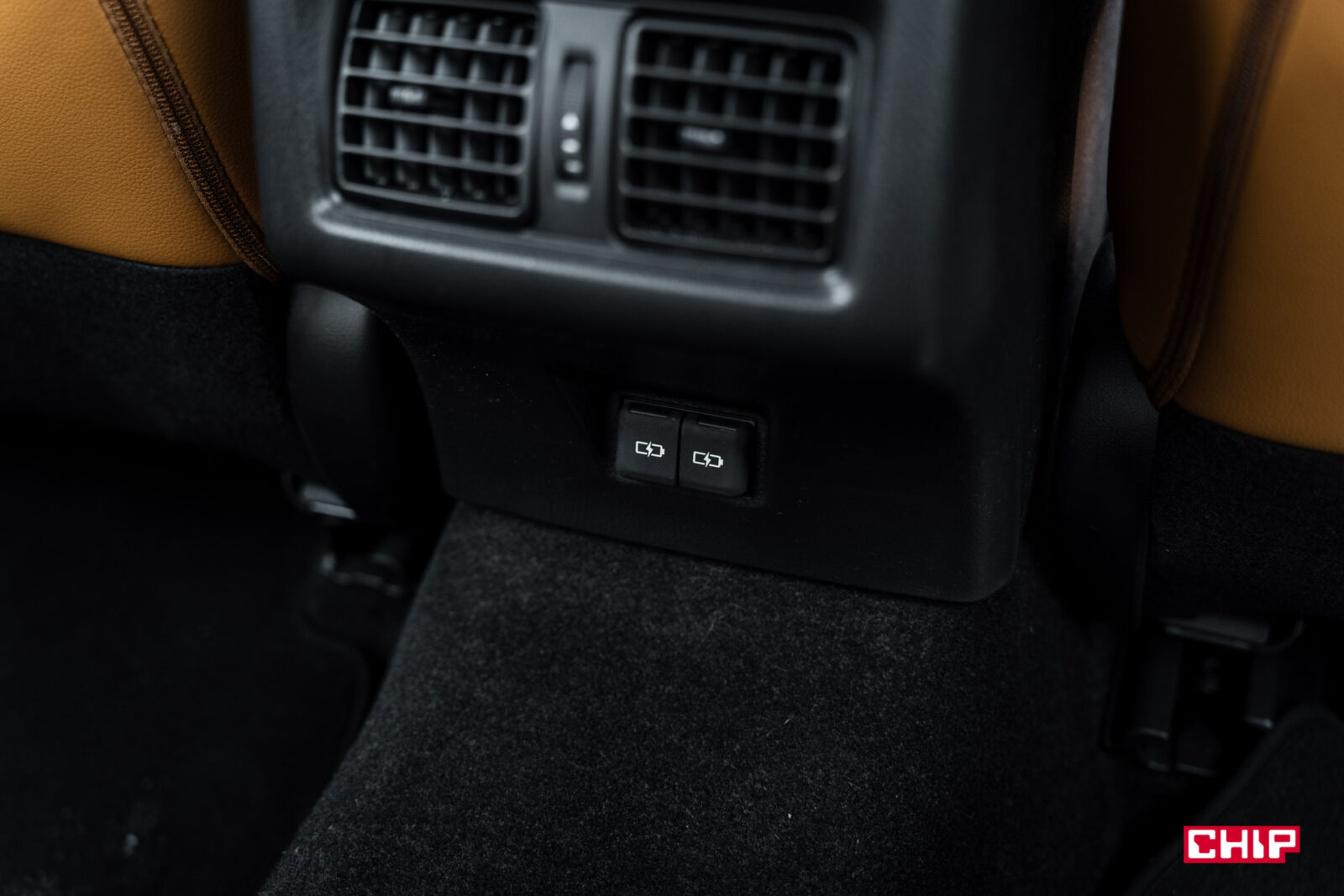 Zaskakująco dużo dzieje się na tylnej kanapie. Miejsca nie brakuje i dwie osoby mogą tu podróżować w wyjątkowo komfortowych warunkach. Opcjonalnie mamy tu grzanie foteli oraz rolety w drzwiach, ale niespodzianka kryje się w podłokietniku. Widzieliśmy to już w Toyocie Mirai i jest to prosta konsola do sterowania multimediami, klimatyzacją oraz pozycją foteli. Ich oparcia są regulowane elektrycznie, a prawdziwą wisienką na torcie jest elektryczna roleta na tylnej szybie, również sterowana z pozycji konsoli w podłokietniku i co ciekawe, nie da się jej rozsunąć lub zasunąć w żaden inny sposób.