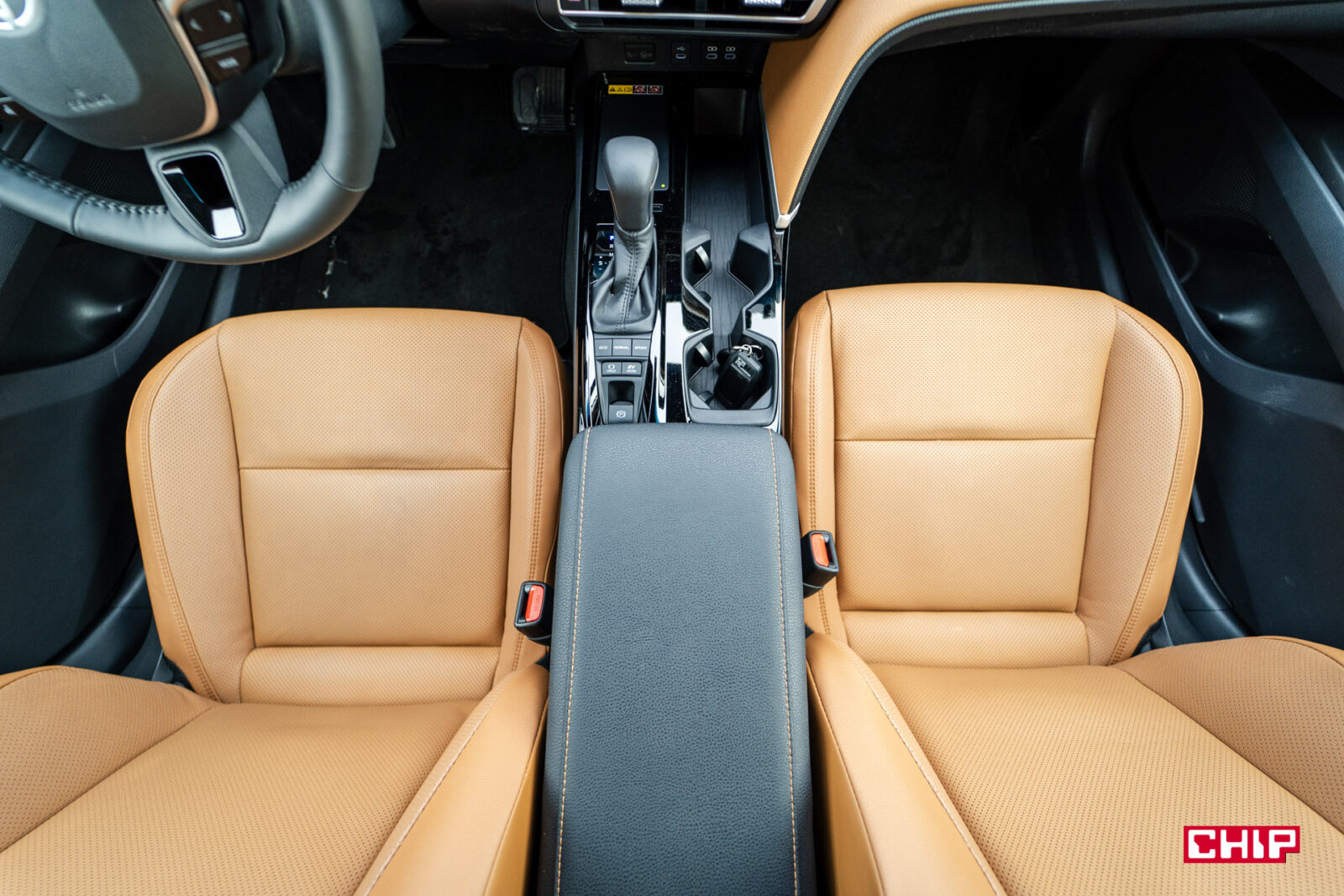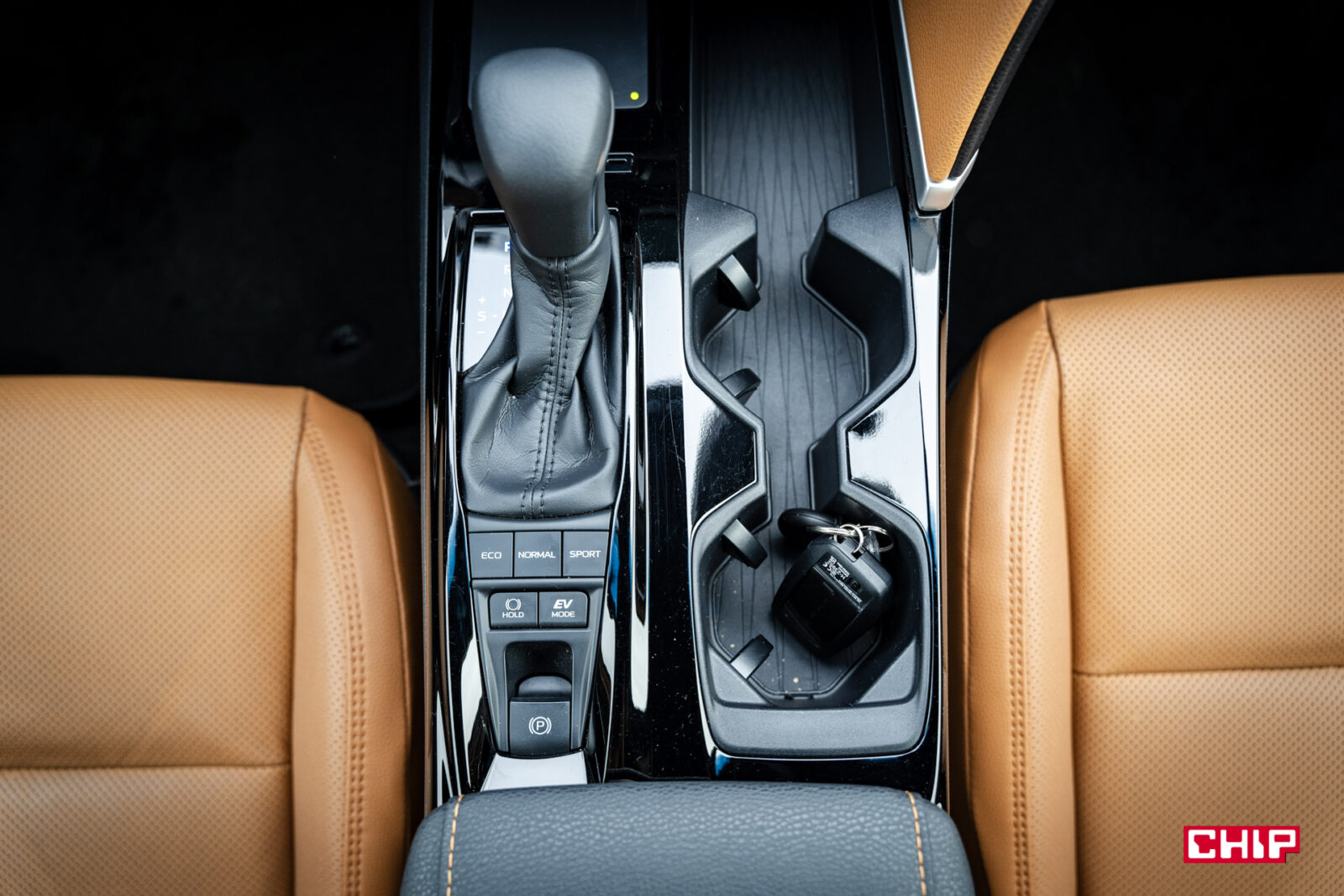 Jest niska, opływowa i wyposażona w zaskakująco sprężyste jak na Toyotę zawieszenie, więc wszystko przemawia na jej korzyść i faktycznie, podróż drogą ekspresową potrafi być przyjemna, pomimo deszczu i wiatru. Poza tym, że auto posłusznie porusząło się po swoim pasie pomimo podmuchó wiatru i śliskiej nawierzchni, wytłumiało też hałas, który niewątpliwie towarzyszyłby nam w czymś gorzej wyciszonym (bez wytykania palcami). Byłam zaskoczona tym, jak dobrze wyciszone jest to wnętrze. Producent zrobił to do tego stopnia skutecznie, że nie przeszkadzała mi skrzynia e-CVT, której na co dzień nie darzę szczególną sympatią. Jej wycie docierało do mnie jedynie w momentach, gdy naprawdę miała powody do wytężonej pracy, a przypadkowe skoki obrotów i towarzyszące jej mniejsze hałasy zupełnie mi nie przeszkadzały, bo ledwie je słyszałam. Brawo, Toyota – skoro montujecie tę skrzynię w swoich hybrydach, poprosimy o wyciszanie ich wnętrz tak, jak to zrobiliście w Camry!