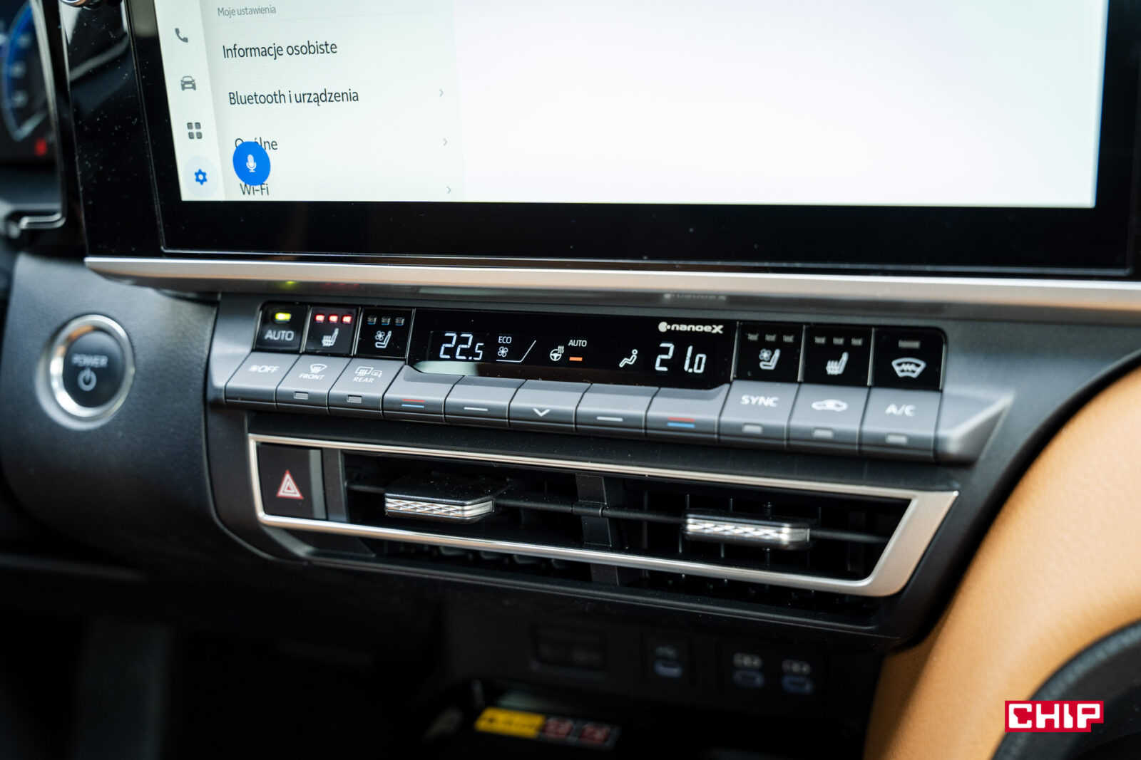Samą klimatyzacją sterujemy za pomocą fizycznych przycisków pod ekranem głównym. Mamy tu w zasadzie wszystko, czego potrzebujemy i nie wymaga to grzebania w ekranie w trakcie jazdy.