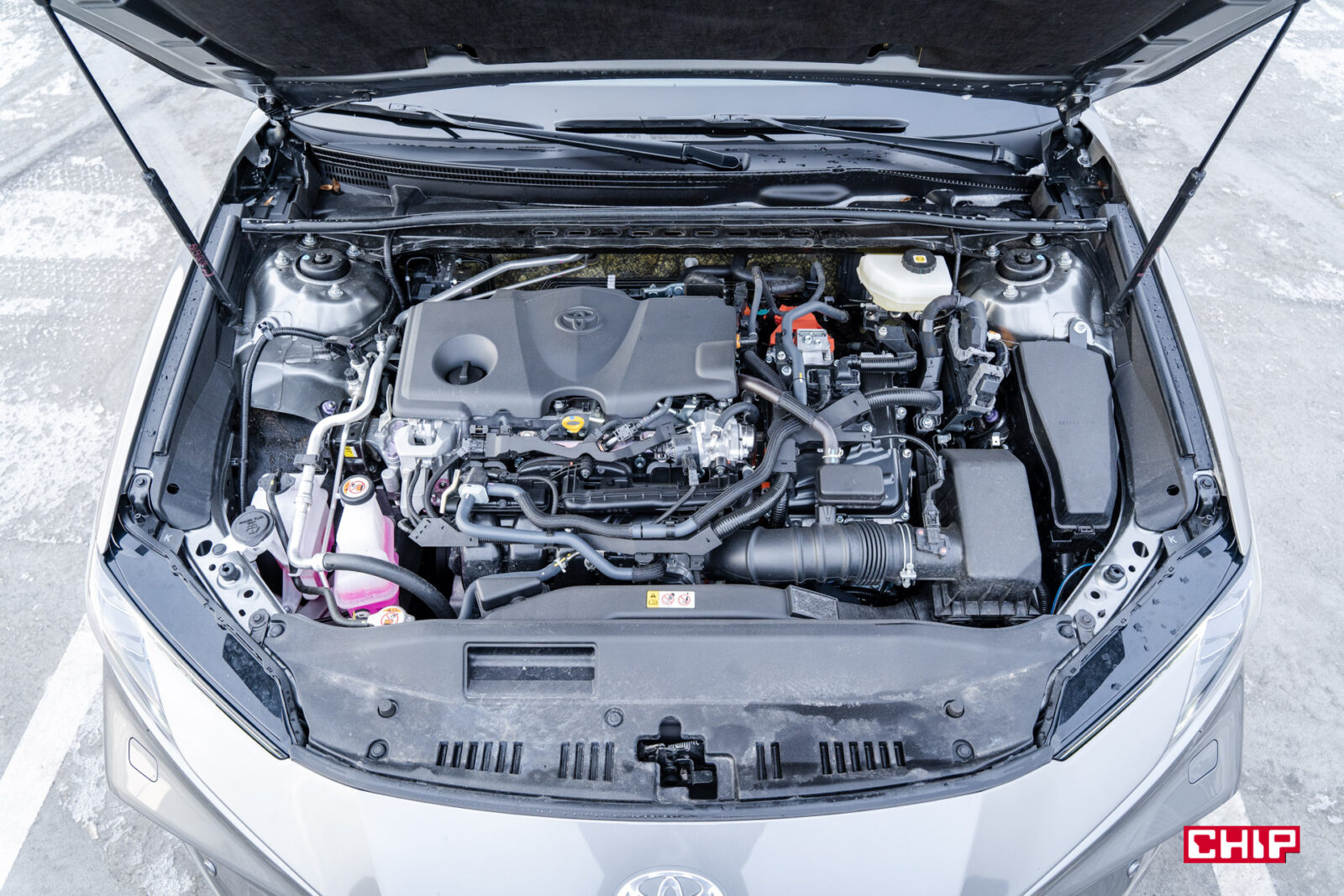 Układ hybrydowy Camry składa się z 2.5-litrowego silnika spalinowego o maksymalnej mocy 186 KM i 221 Nm maksymalnego momentu obrotowego (3 200 – 5 200 obr./min) oraz z silnika elektrycznego. Moc systemowa układu to 230 KM, rozpędzajaca naszego sedana 0-100 km/h w 7.2 s, nie mamy więc do czynienia z demonem prędkości, ale za to Camry zachowuje się stabilnie przy wysokich prędkościach.