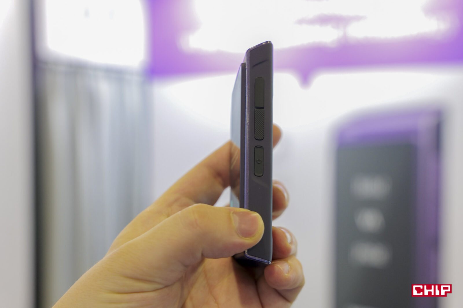 Konstrukcja Vasco Translator Q1 została wykonana z pamięcią o tym, jak prezentowały się poprzednie urządzenia. Bryła jest zwarta, a boczne przyciski odpowiednio duże i łatwe do zmapowania tak, by używać ich zamiast ekranu do włączania konkretnych funkcji. Ponownie zastosowano kolorowe obudowy wykonane z tworzywa, które delikatnie mienią się żywymi barwami. Na stoisku widziałem trzy wersje kolorystyczne – czarną, śliwkową oraz czerwoną. Kto wie, może w przyszłości będzie ich więcej?