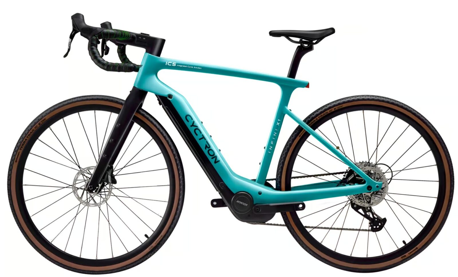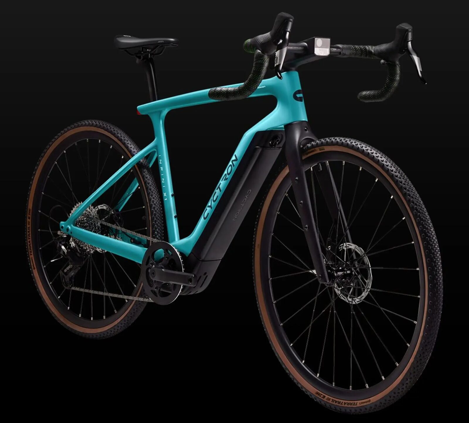 Głównym elementem napędu roweru Infini X1 jest silnik Ananda zamontowany między korbami o mocy 250 lub 350 watów, który generuje moment obrotowy na poziomie aż 100 Nm. Z jednej strony zapewnia wspomaganie do 25 km/h na europejskich drogach (32 km/h na amerykańskich), a z drugiej znacznie ułatwia pokonywanie wzniesień i gwarantuje płynne przyspieszanie. Zasila go z kolei 672-Wh akumulator zintegrowany z rurą dolną o zasięgu do 110 km, ale nie jest to e-bike z rodzaju tych, na których rowerzysta będzie się nudził. Cyctron Infini X1 poza wydajnym napędem elektrycznym oferuje bowiem również napęd SRAM Apex Wireless 1×12, a do tego hamulce hydrauliczne, wygodne siodełko Fizik Terra Aidon oraz 28-calowe (700x40c) opony Continental Terra Trail.
