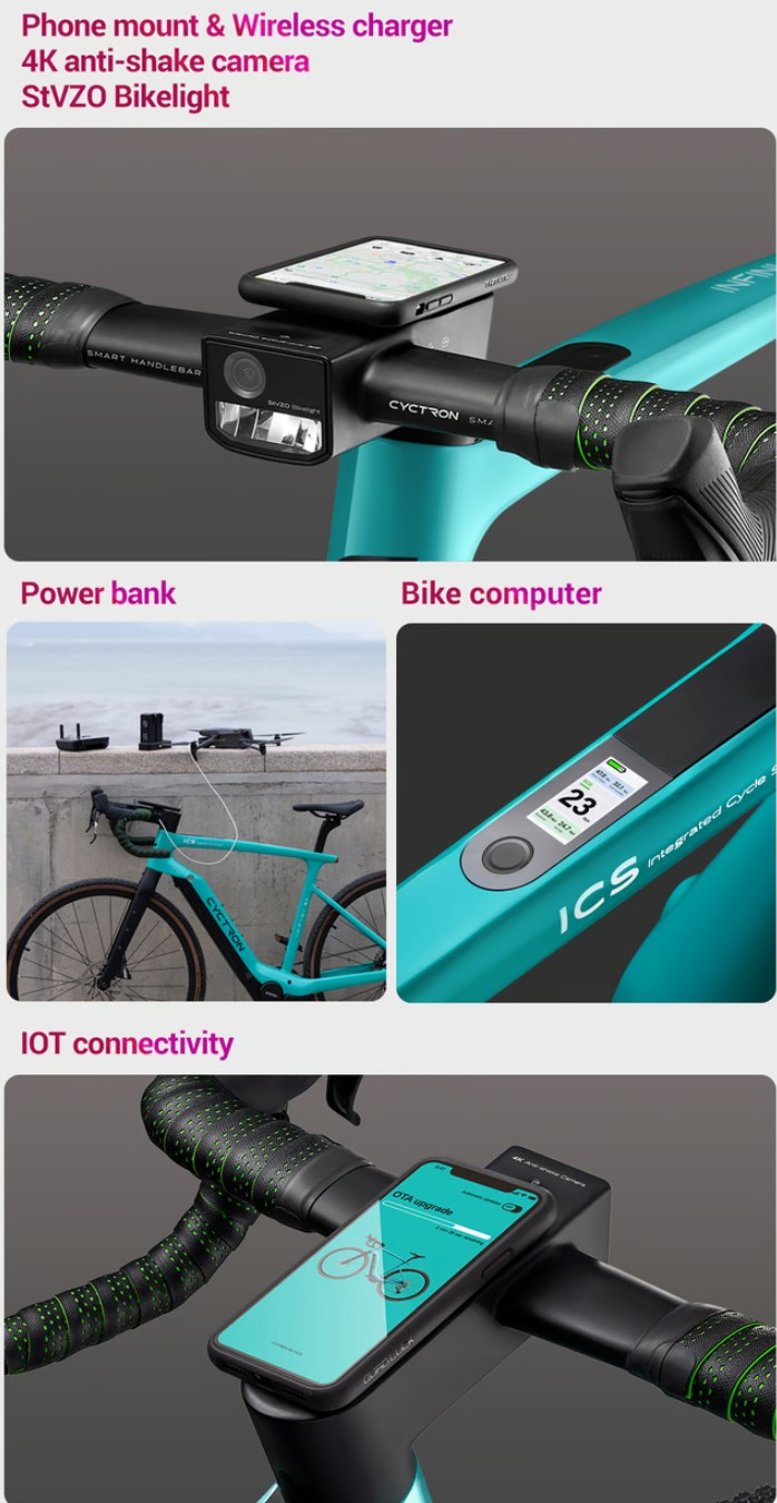 Czym więc Cyctron Infini X1 się wyróżnia? Ano zaawansowaniem technologicznym, bo poza dotykowym ekranem w górnej turze ramy, skanerem linii papilarnych, wbudowanym systemem GPS oraz funkcji przeciwdziałania kradzieży, ma też dostęp do wbudowanej kamery nagrywającej w 4K i 60 klatkach na sekundę, inteligentnego systemu oświetlenia z 60-lumenowym reflektorem, opcją ładowania laptopów i smartfonów mocą do 65 watów oraz zintegrowanym z kierownicą uchwytem na smartfon, który na dodatek oferuje funkcję ładowania bezprzewodowego.