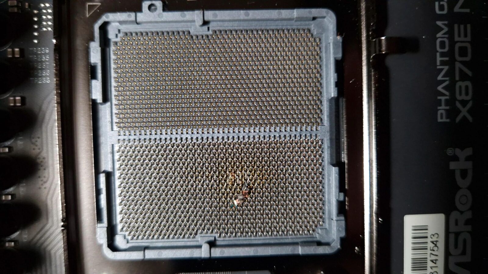Użytkownik Reddita o nicku “t0pli” pokazał, co stało się z jego procesorem Ryzen 7 9800X3D umieszczonym na płycie głównej ASRock X870E NOVA. Oba podzespoły były nowiutkie – zakupione w styczniu. A stało się to, że podczas niezbyt wymagającej czynności, jaką było oglądanie serialu w streamingu, komputer nagle wyłączył się i nie chciał włączyć ponownie. Tak zostało.