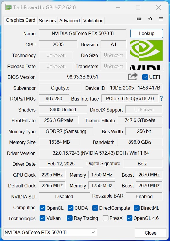 - Nvidia RTX 5070 Ti: Game Ready 572.43