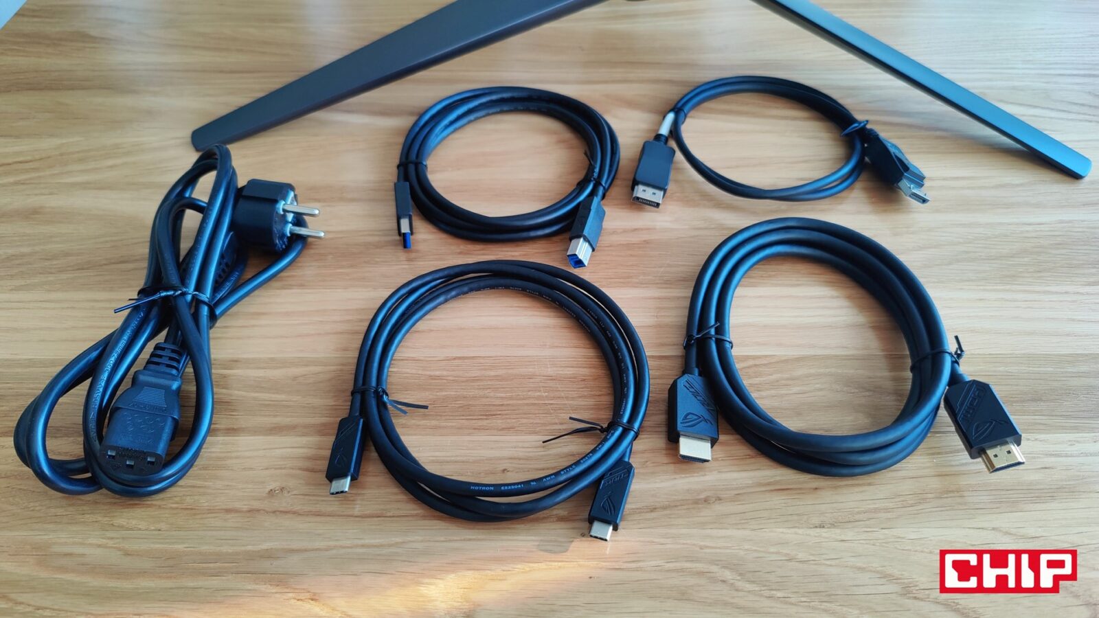 W pudełku nie znajdziecie bowiem jedynie podstawki, instrukcji, przewodu zasilającego oraz jednego sygnałowego, a: