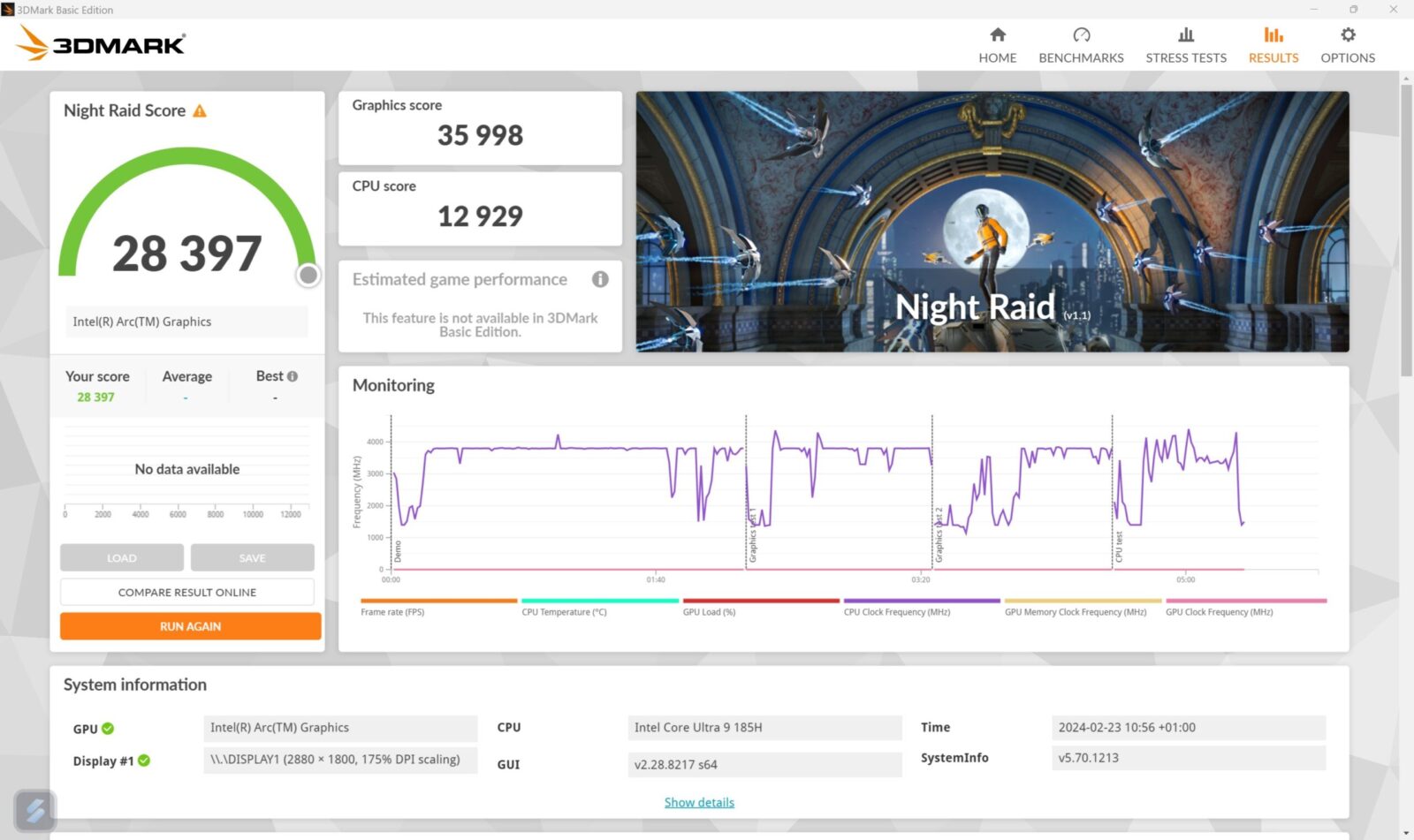 Z tych dwóch wykresów wynika, że iGPU zastosowane w nowszym procesorze jest o niebo lepsze w porównaniu do tego starszego. Nie jest to może poziom, przy którym możecie oczekiwać możliwości grania w nowe produkcje AAA, ale w kilkuletnie tytuły i te mniej zaawansowane już jak najbardziej. To, co z kolei mnie pozytywnie zaskoczyło, to możliwości tego laptopa w zakresie tworzenia gier, bo Zenbook Duo UX8406CA radzi sobie zarówno z Unity, jak i Unreal Engine 5, choć oczywiście tylko wtedy, kiedy wasze sceny są albo dosyć kompaktowe, albo przynajmniej nieprzekomplikowane graficznie. Samo programowanie, rekompilowanie i testowanie zmian zachodzi jednak wzorowo i nawet nie rozgrzewa zbytnio laptopa, a to świetna wiadomość. Pod znacznym obciążeniem bowiem ten model daje się we znaki, generując hałas o głośności około 70-75 dB, czemu trudno się dziwić, bo temperatura rzędu 100 stopni Celsjusza nie jest wtedy rzadkim widokiem.