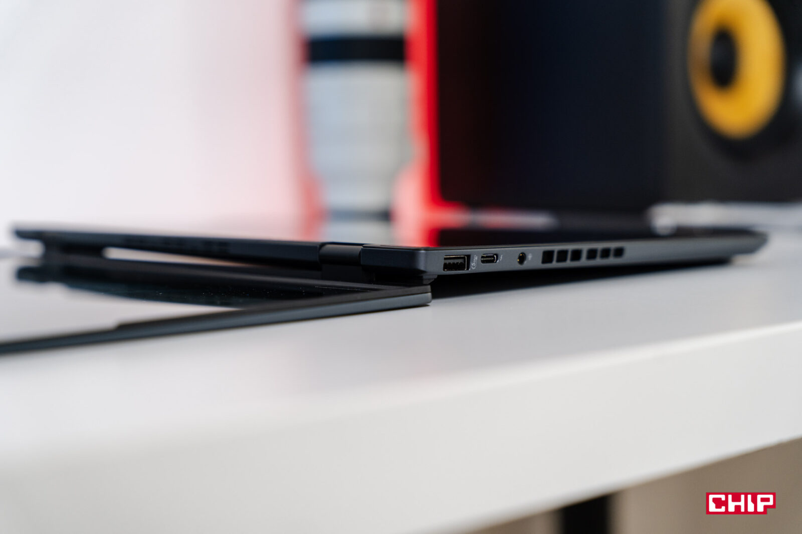 - portów (USB-A 3.2 Gen 1, dwa Thunderbolt 4, HDMi 2.1 TMDS, 3,5 mm Combo Audio Jack)