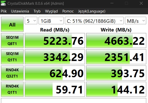 Oczywiście w Zenbook Duo nie dostaniecie pełnych możliwości tego procesora, jako że zastosowany system chłodzenia nie utrzyma go w niskiej temperaturze (thermal-throttling to w tym sprzęcie chleb powszedni), a dostępne porty umożliwią podłączenie maksymalnie trzech monitorów. Na 128 GB pamięci operacyjnej też nie macie co liczyć, bo najbardziej zaawansowany model występuje w wersji z 32 GB pamięci LPDDR5X oraz z 2-terabajtowym dyskiem na PCIe 4.0 i to właśnie jego miałem okazję sprawdzić w akcji. Jak więc sprawa ma się w typowych benchmarkach, czyli syntetycznych testach wydajności?