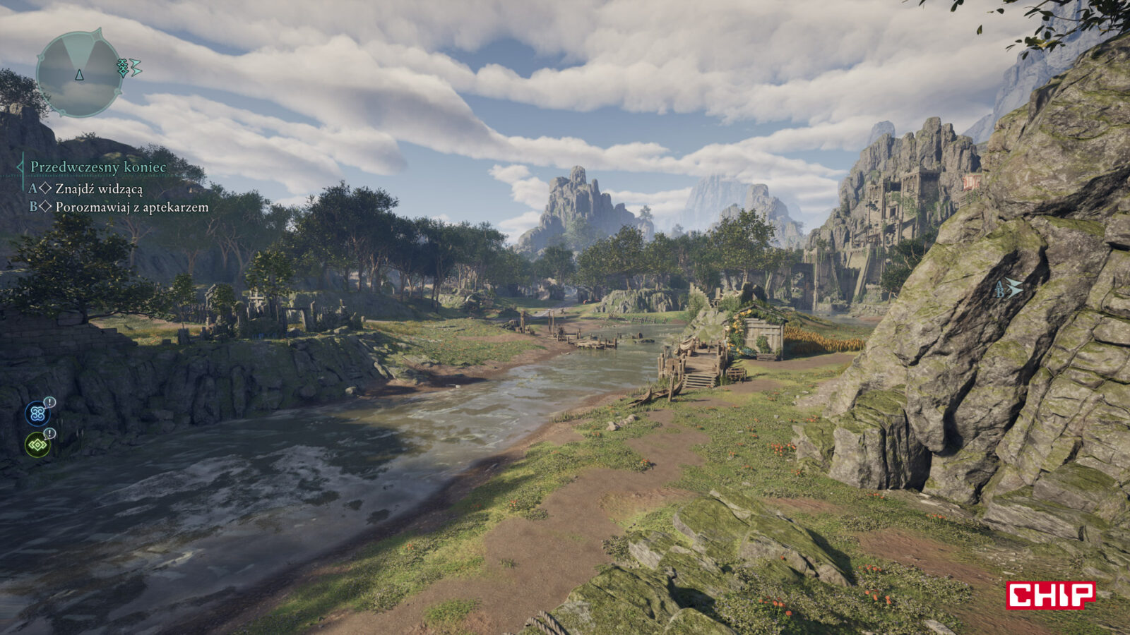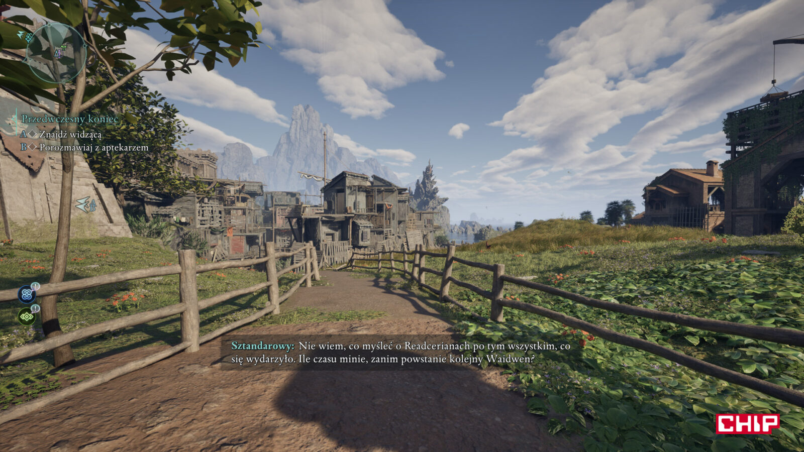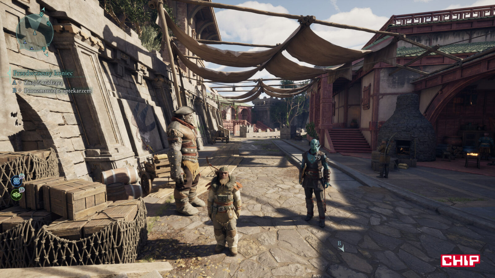 Podróżowanie po świecie gry z jednej strony jest ciekawe. Bo to ładne, kolorowe, zróżnicowane. Tylko puste i miejscami bardzo dziwne. Już druga lokacja w grze, do której trafiamy po jakiś 30-40 minutach grania właśnie tym odrzuca. Trafiamy do portu połączonego z jakąś małą wioską. Prosto za nią są dzikie tereny, a delikatnie po skosie w prawo od pozycji wyjściowej góruje na niewielkim wzgórzu miasto.
