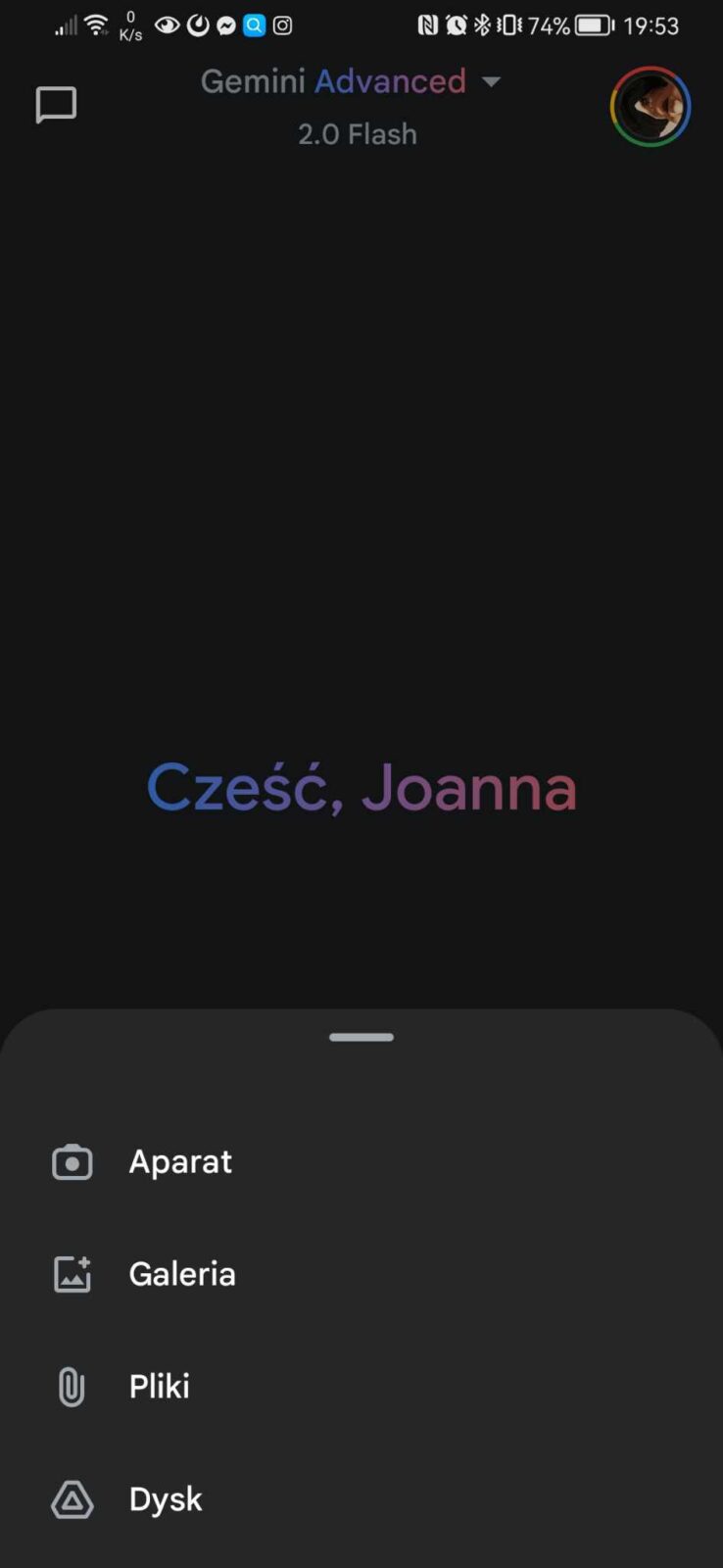 Odkrycie zawdzięczamy serwisowi 9To5Google, który zwrócił uwagę na tę cichą aktualizację. Dotyczy ona zarówno aplikacji na smartfonach, jak i wersji internetowej, jednak jak już wspomniałam, odbywa się to prawdopodobnie stopniowo. Tak czy inaczej, tam, gdzie wcześniej widoczna była jedynie możliwość udostępniania obrazów, teraz pojawi się ikona „+”. Po jej naciśnięciu rozwiną się opcje udostępniania plików tekstowych oraz tych umieszczonych na Dysku, znajdujące się pod Aparatem i Galerią.
