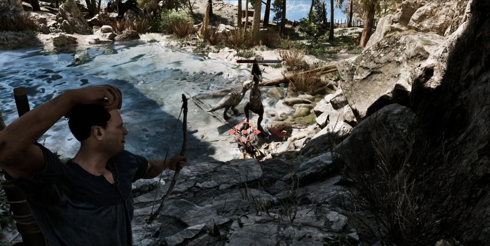 Co więc mi się podobało? Ano to, że kontrola nad głównym bohaterem samym swoim feelingiem przynosi na myśl oryginał. Że mogłem na tyle wpienić starego poczciwego Diego, żeby ten mnie zabił. Że kiedy natrafiłem na pierwsze kretoszczury z kilofem w ręku, to ledwie uszedłem z życiem. Że kiedy ścierwojady zaatakowały mnie swoją bandą, to jedyne, co mogłem zrobić, to wykorzystać pobliski klif i strzelać do nich z łuku, a ich sztuczna inteligencja nie była w stanie ogarnąć, co właśnie się dzieje. Jedni powiedzą, że to ot źle zaprojektowany system path-findingu do celu… i choć się z nimi zgodzę, to oryginalny Gothic przecież na takim cheesowaniu zawsze stał. Na plus mogę też zaliczyć możliwość sprawdzenia zawaliska, które ogranicza mapę do pierwszej lokacji i zainicjowania misji pobocznej z tamtejszym strażnikiem.
