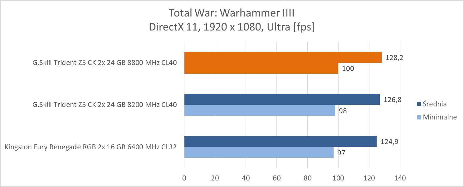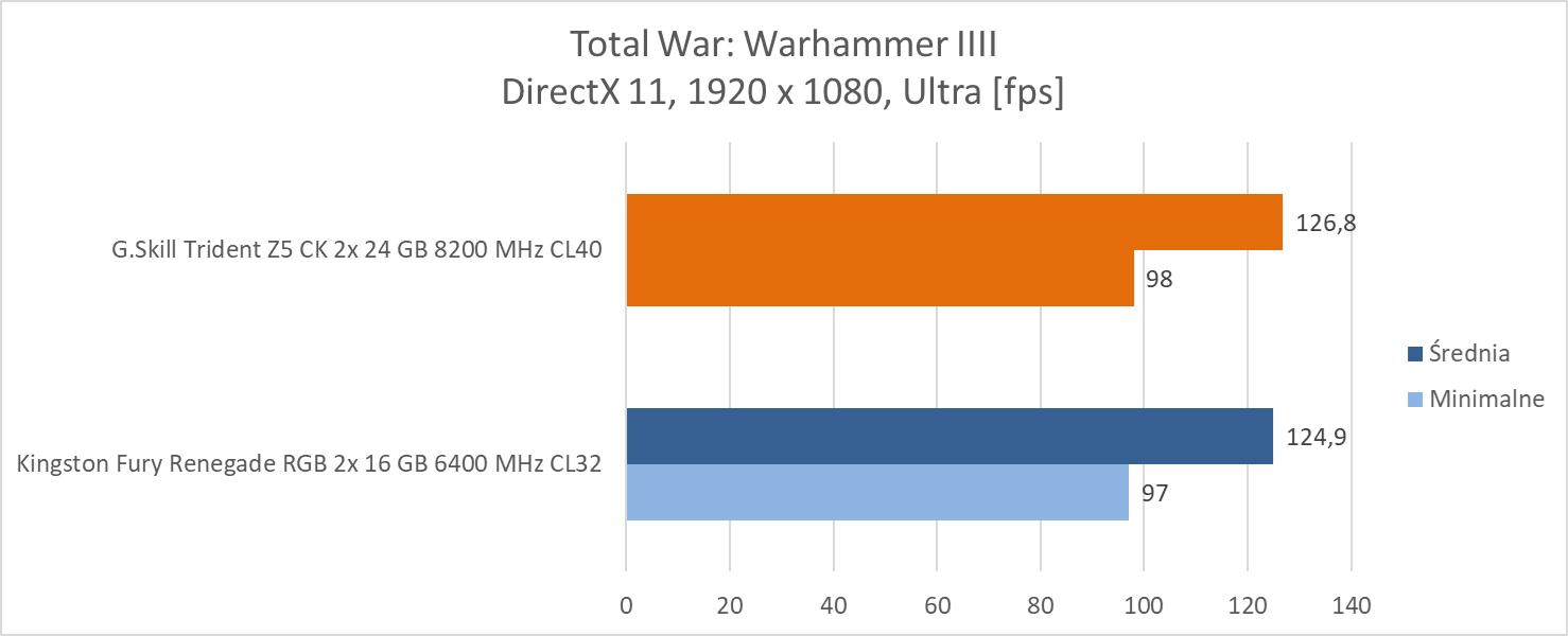 Jest to ostatnia część cyklu gier Total War producenta Creative Assembly. Gra garściami czerpie z uniwersum Warhammera, a do tego jest świetnym połączeniem RTS-a i gier turowych. Gry z serii Total War charakteryzują się wieloma dodatkami i gigantycznymi bitwami. Testy wykonaliśmy przy wykorzystaniu wbudowanego benchmarku mirrors of madness. Wybrane ustawienia to ultra. Benchmark zwraca średnią liczbę fps oraz minimalną i takie wartości znajdziecie na wykresach. Gra działa też pod kontrolą API DirectX 11.
