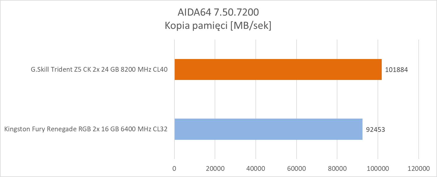 AIDA64 to jeden z najpopularniejszych programów służących do diagnostyki komputera. W programie przeprowadzone zostały testy odczytu z pamięci, zapisu do pamięci, kopi pamięci oraz czasu oczekiwania pamięci.
