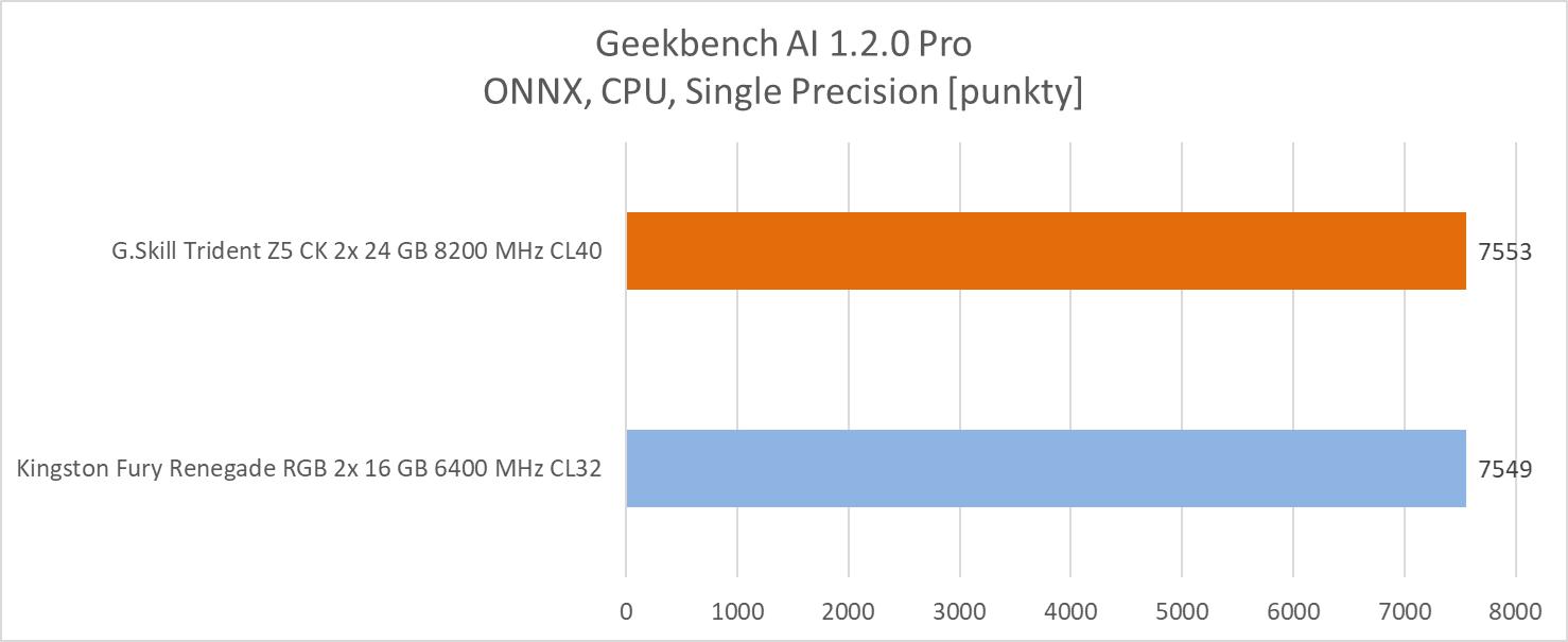 Geekbench AI Pro o pakiet testów porównawczych z metodologią testowania uczenia maszynowego, głębokiego uczenia się i obciążeń skupionych na sztucznej inteligencji. Wszystko to w celu oceny wydajnościz estawu w zastosowaniach AI. Wykorzystaliśmy test ONNX CPU. Benchmark daje nam trzy wyniki: Single Precision, Half Precision oraz Quantanized.