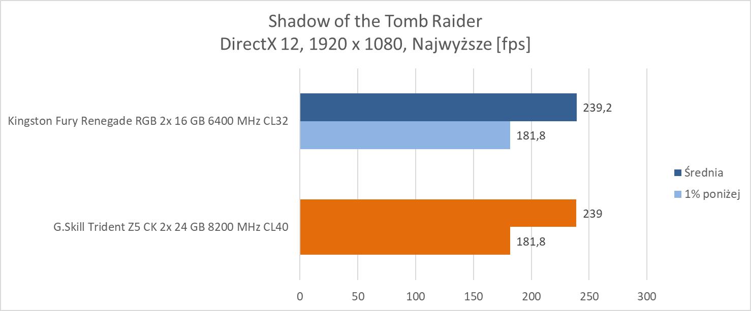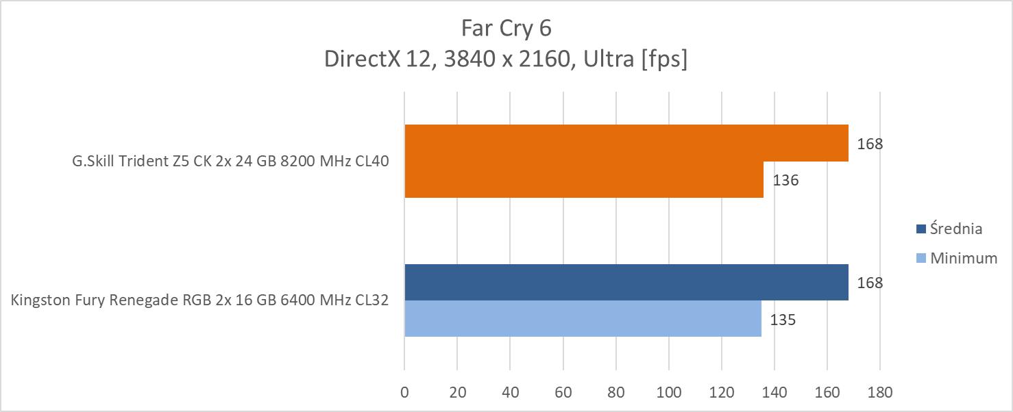 W grach również nie ma dużych różnic – widać, że platforma Intela średnio potrafi wykorzystać potencjał pamięci. Średnie różnice nie są wysokie i są podobne we wszystkich rozdzielczościach. Nie ma też jakiejś gry, która znacznie wybijała by się na tle pozostałych.