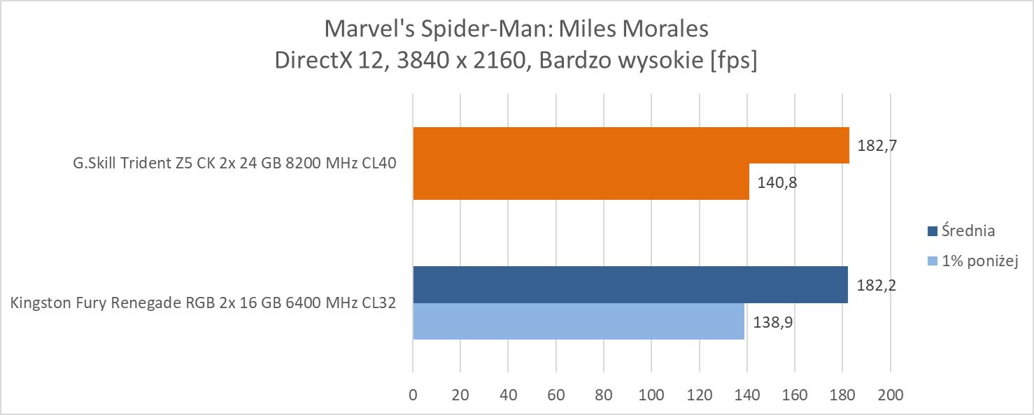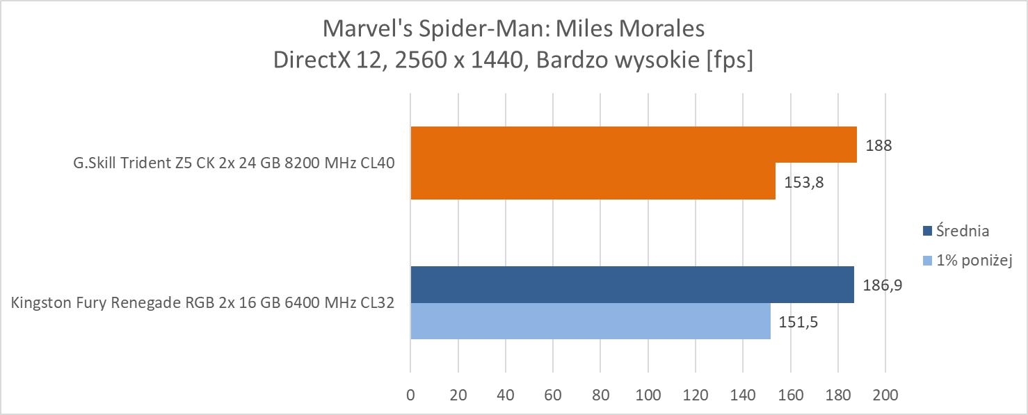 Kontynuacja ciepło przyjętego Spider-Man-a z 2018 roku. W grze tytułowy bohater przejmuje rolę po Piterze Parkerze. Jest to mocna gra akcji z widokiem trzecioosobowym w otwartym świecie dla fanów Marvela. Gra zrobiona przez to samo studio co poprzedniczka, czyli Insomniac Games, zadebiutowała w 2022 roku i również była ciepło przyjęta przez graczy. Testy przeprowadziliśmy w dzielnicy Upper East Side przy ustawieniach bardzo wysokich.