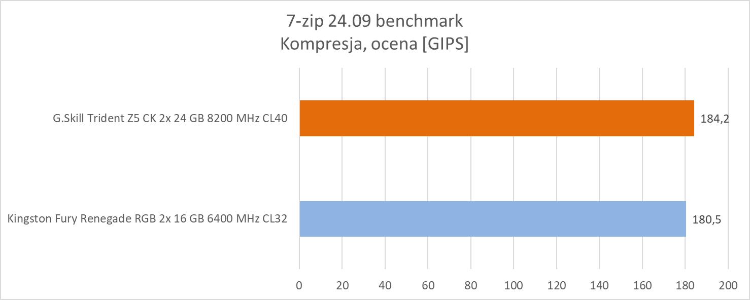 7-Zip to darmowy program do kompresji plików, który jest często wykorzystywany przez użytkowników komputerów. W testach wykorzystaliśmy wbudowany benchmark, który zwara wyniki dla kompresji i dekompresji.