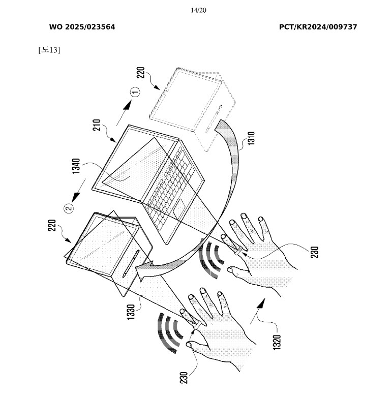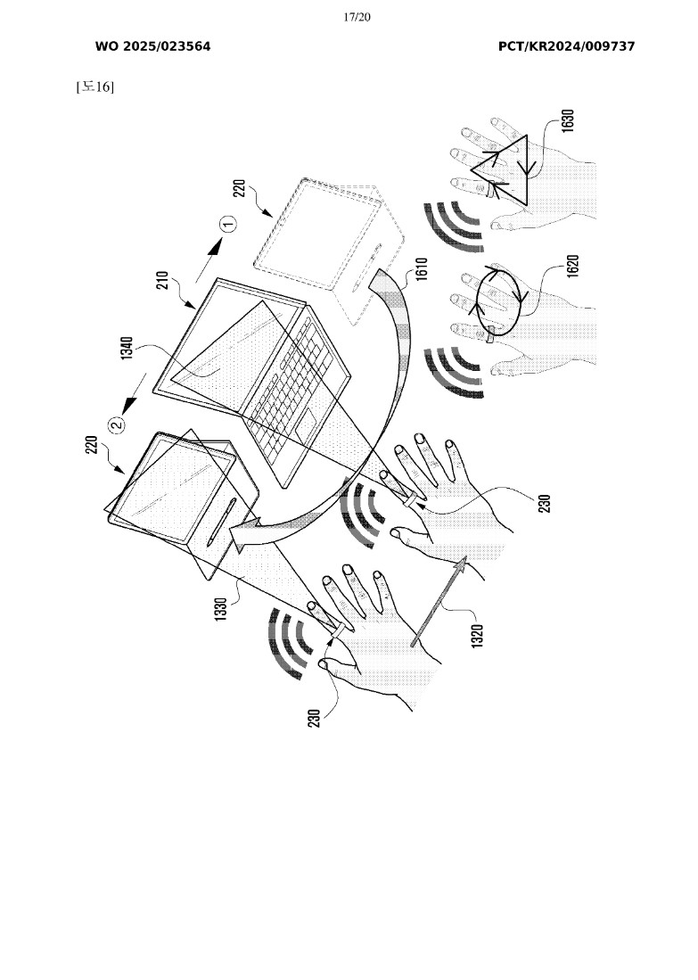 Dokumentacja ujawnia nam nowe możliwości pierścienia, który mógłby kontrolować inne urządzenia. Opis patentu i szkice pokazują użytkownika inteligentnego pierścienia wchodzącego w interakcję z innymi połączonymi bezprzewodowo urządzeniami, takimi jak tablet i laptop. Można tutaj się domyślać, że w ten sposób użytkownicy mogliby przenosić pliki z jednego sprzętu na drugi. Działałoby to zapewne na podobnej zasadzie co jedna z funkcji rysika S Pen, chociaż można się spodziewać większej płynności, gwarantowanej przez bardziej intuicyjną konstrukcję Galaxy Ring.