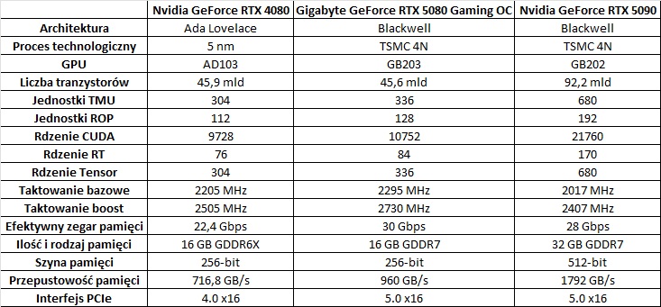 Test Gigabyte GeForce RTX 5080 Gaming OC – podsumowanie