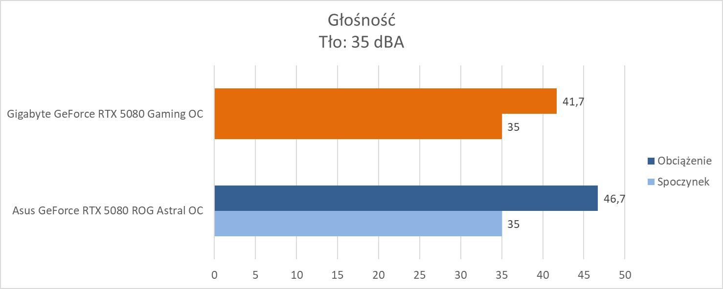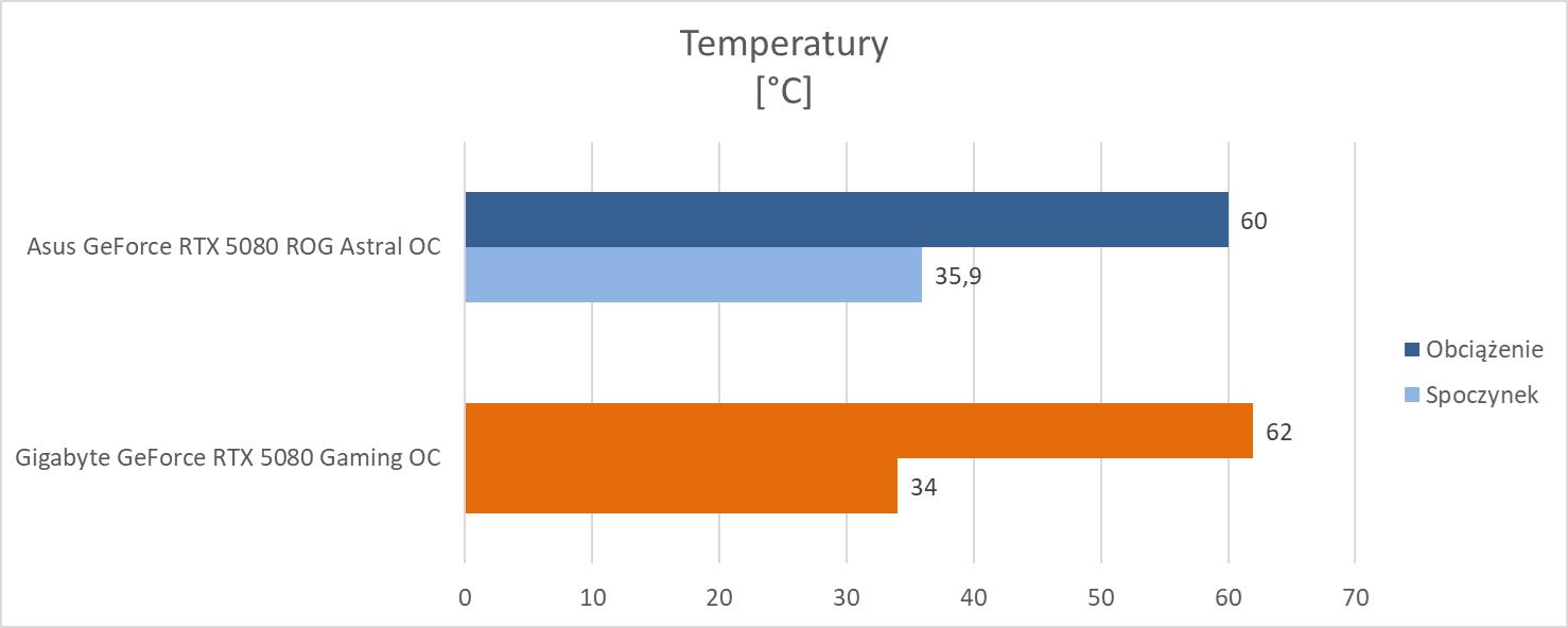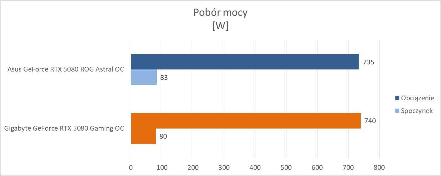 Pobór mocy pod obciążeniem jest trochę niższy od modelu Asusa oraz wyższy niż RTX 4080 SUPER. Widać więc, że wzrost pobóru mocy idzie razem ze wzrostem wydajności.
