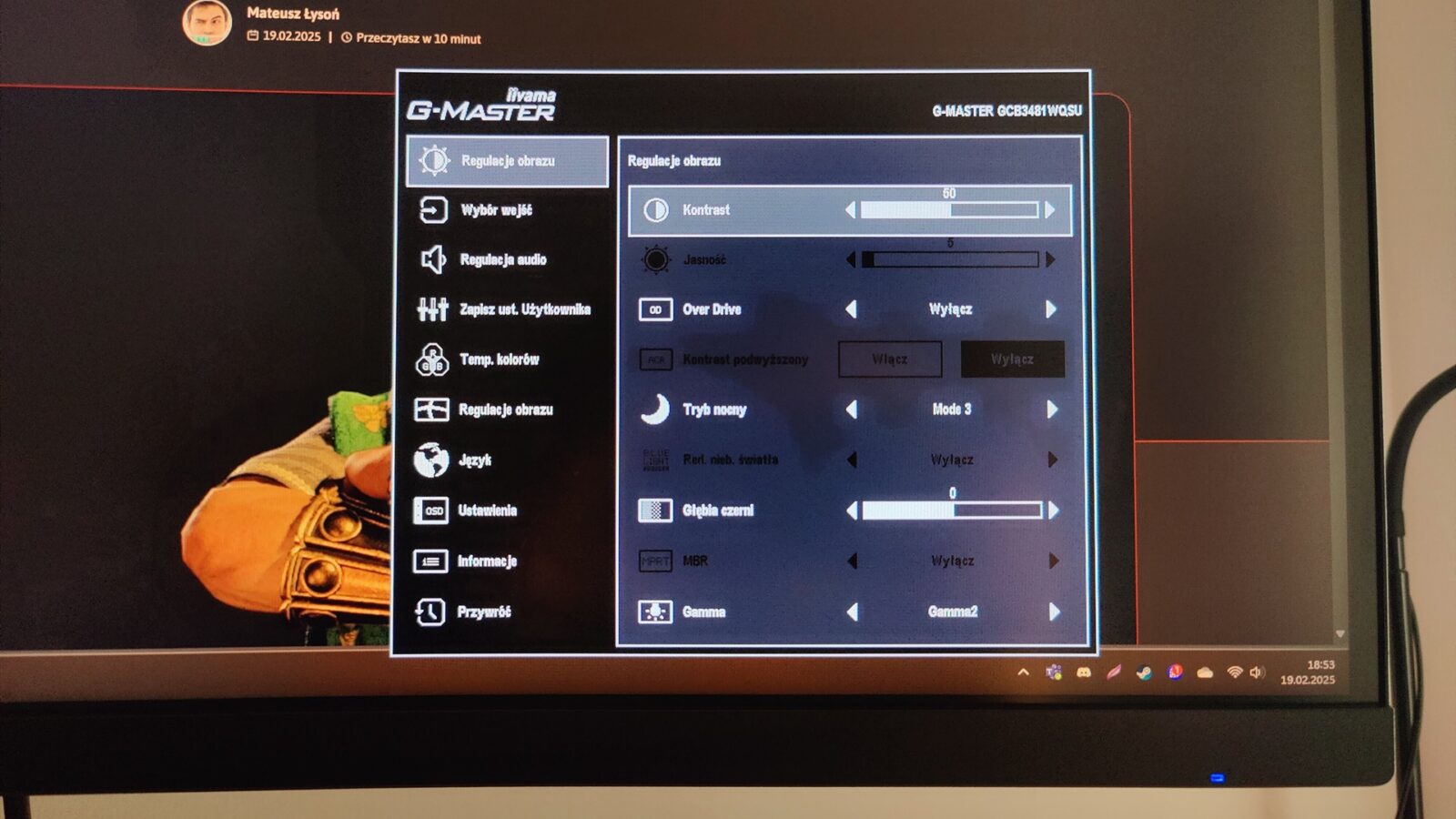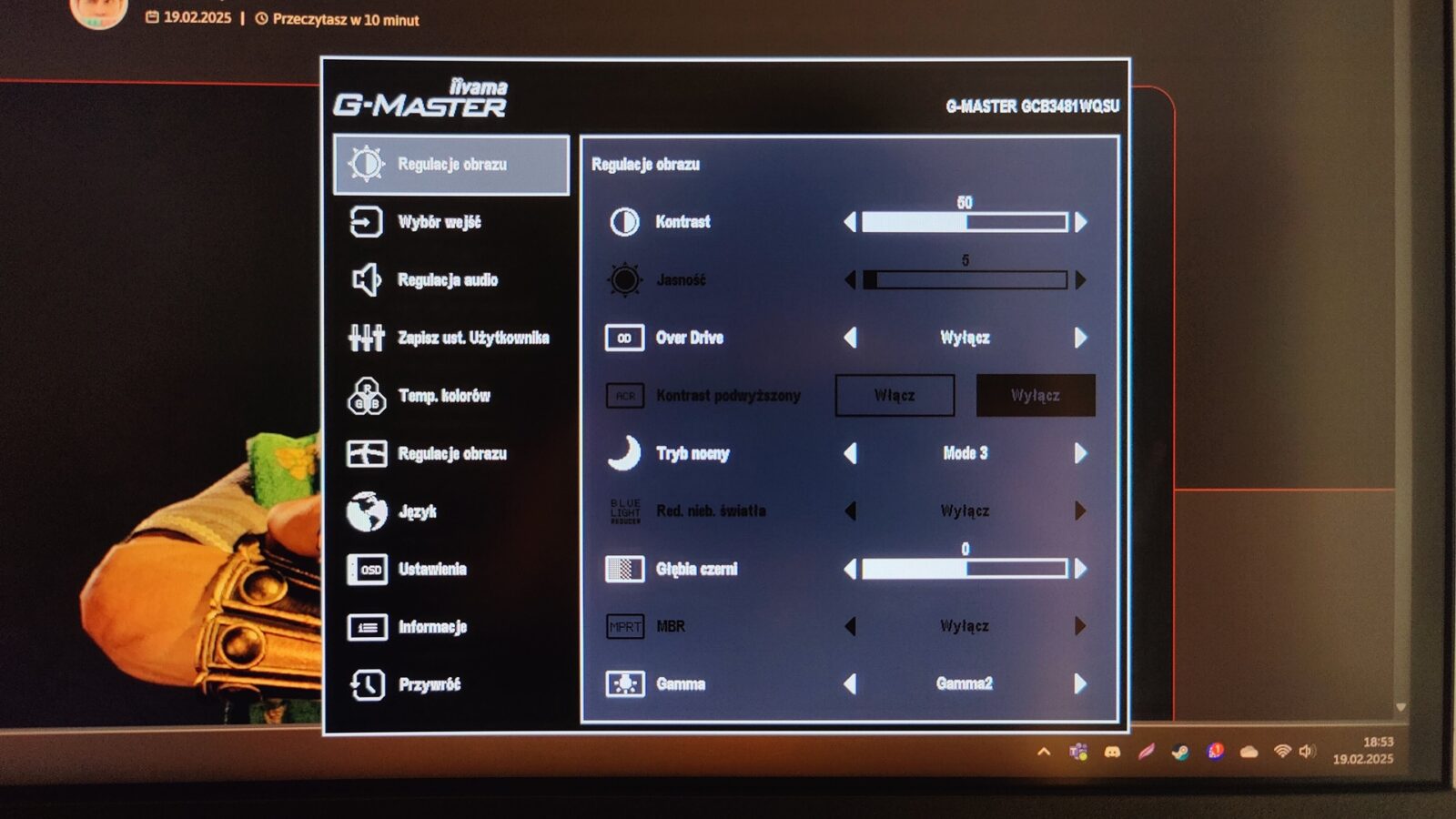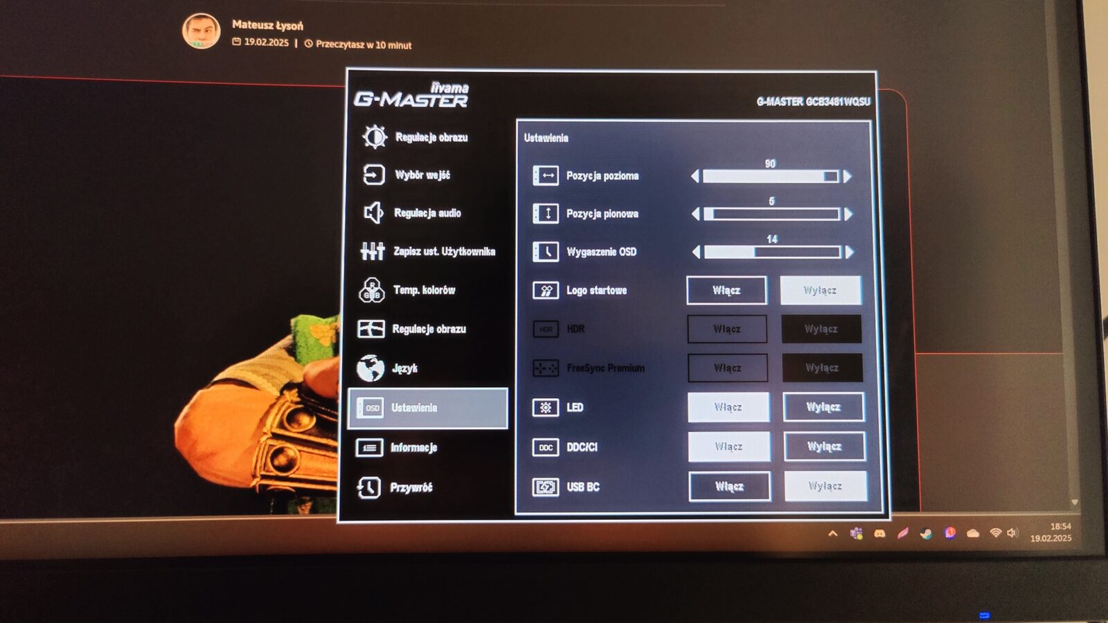 OSD w iiyama G-Master GCB3481WQSU-B1 Red Eagle