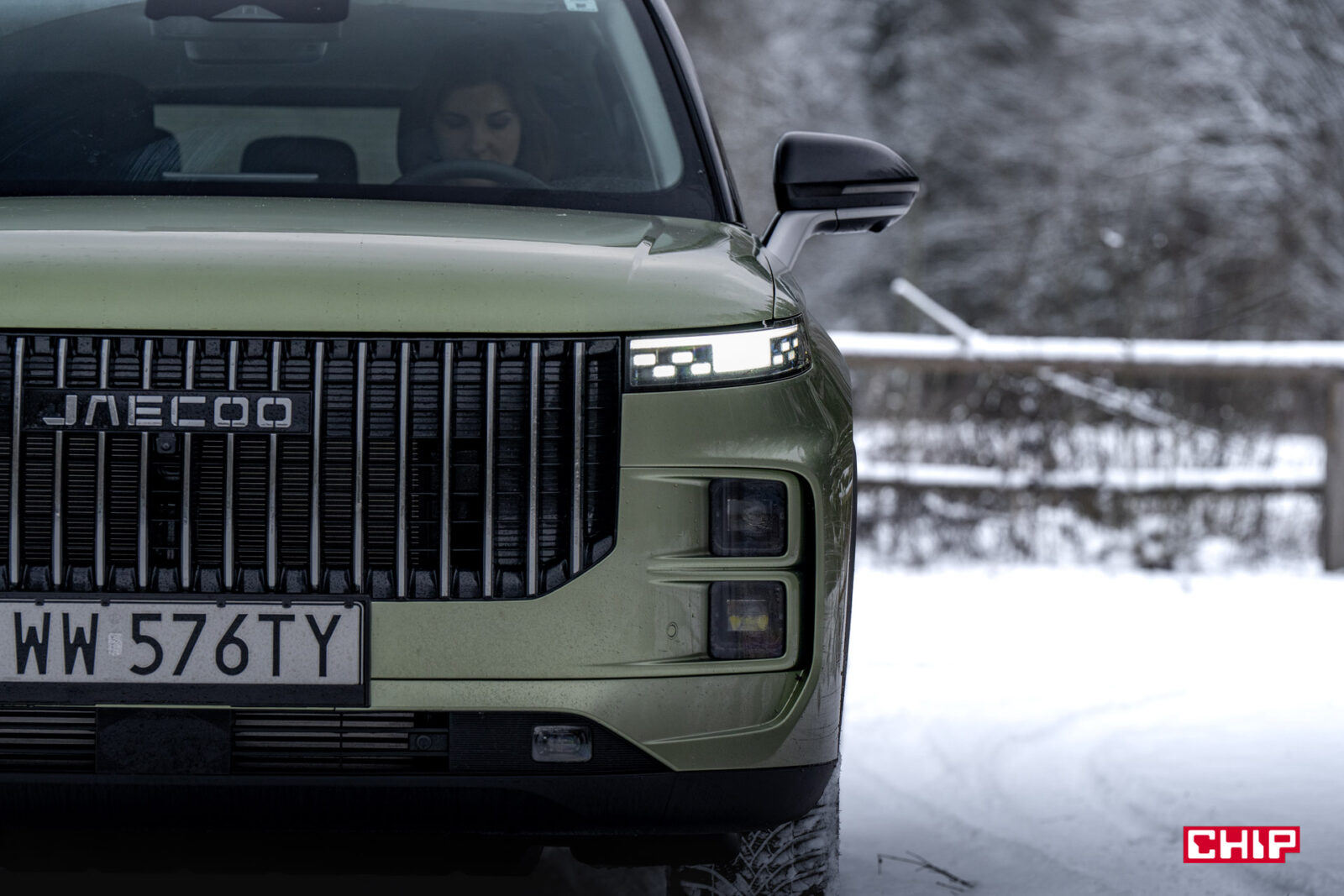 Jaecoo 7 to masywny, terenowy SUV. Z wysoko uniesioną maską, górujący nad otoczeniem. Eee… tak, na zdjęciach. Bo w rzeczywistości auto wydaje się o wiele mniejsze. Nie, żeby to była jakaś ogromna wada, ale w swojej kategorii to dosyć kompaktowy model.