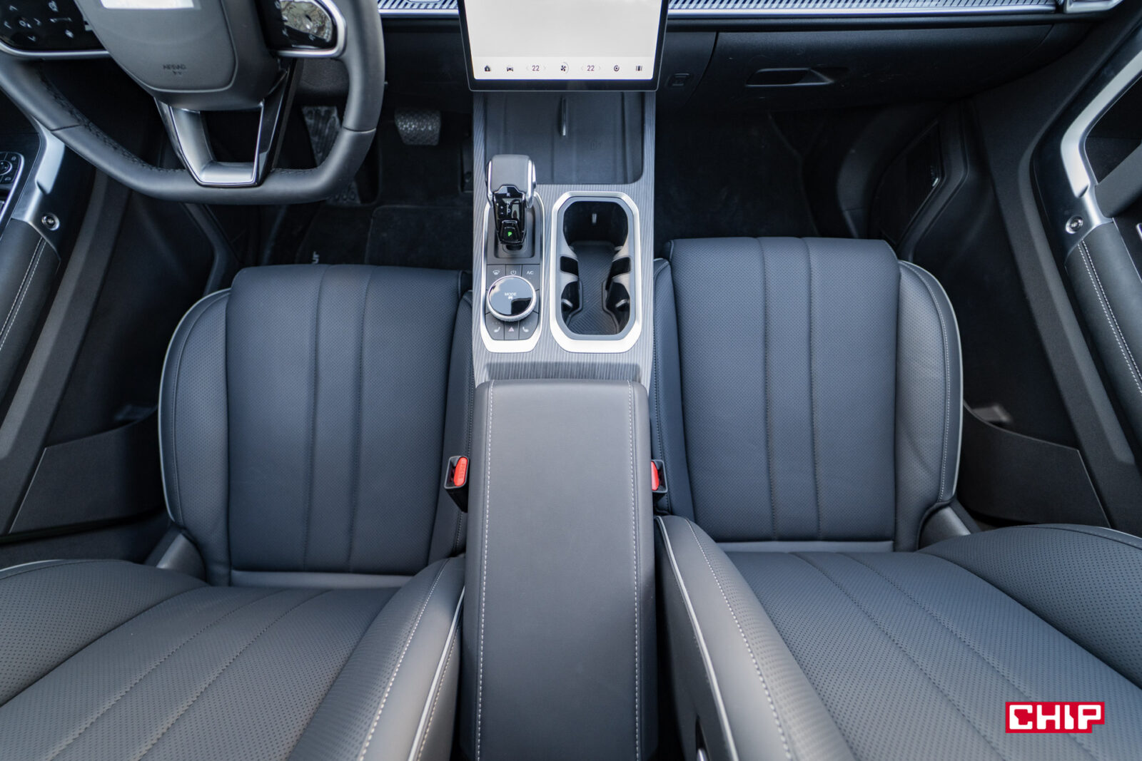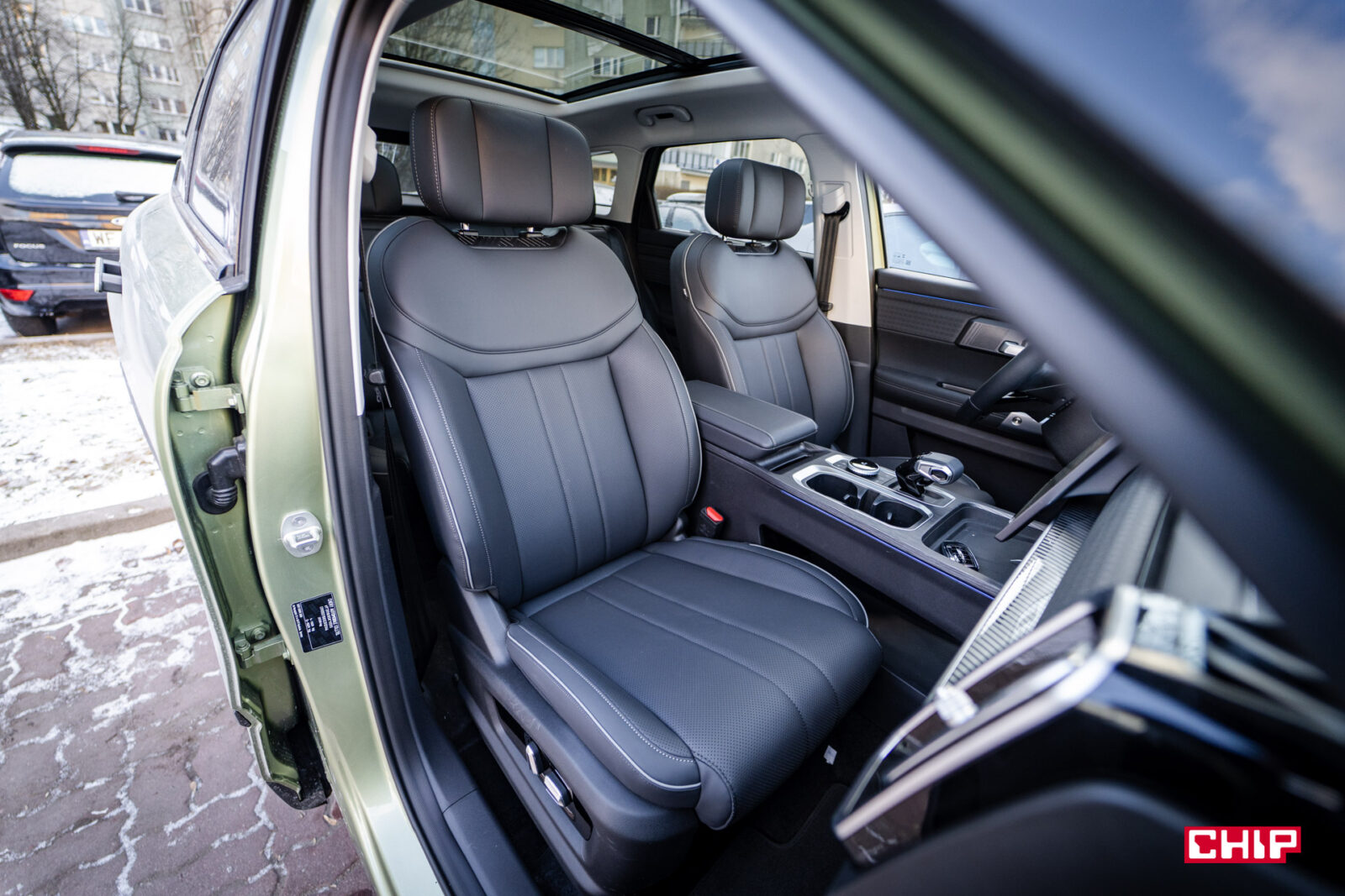 Rzut oka na cennik, rzut oka na wnętrze… Coś tu ewidentnie nie pasuje, bo Jaecoo 7 nie wygląda jak auto kosztujące mniej niż 200 tys. zł. Jest ładnie, świeżo, efektownie i na bardzo dobrym poziomie wykonania. Choć i tu nie wszystkie elementy są oryginalne.
